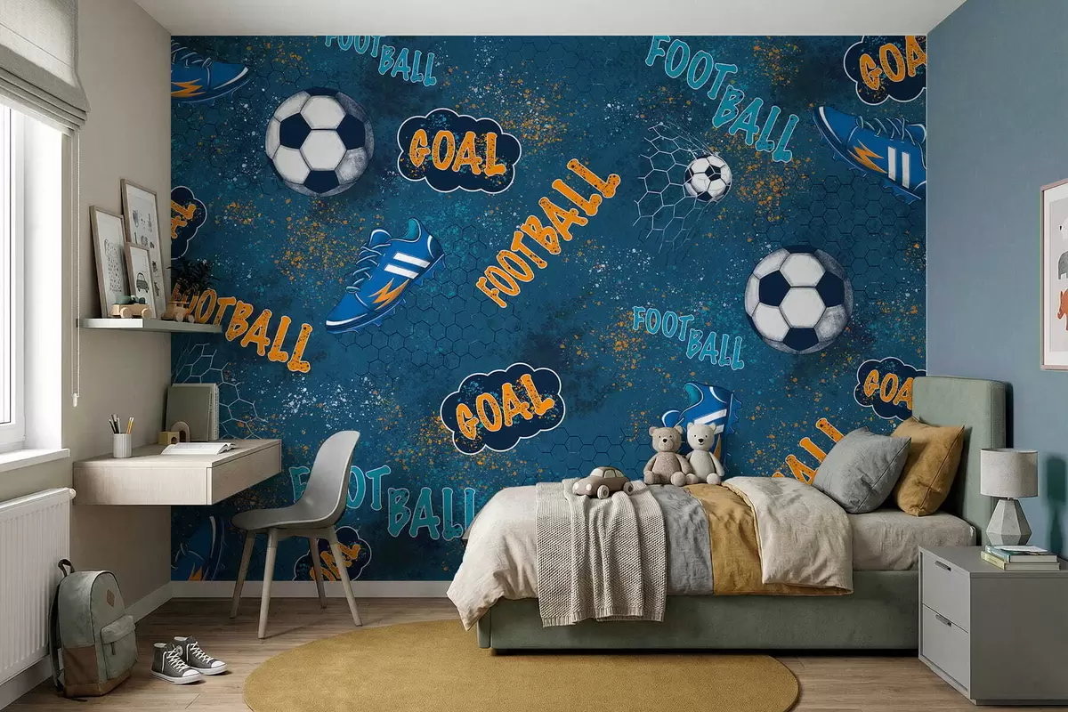 Carta da parati Motivo per bambini con palloni, scarpe e parole sportive nr. w05037