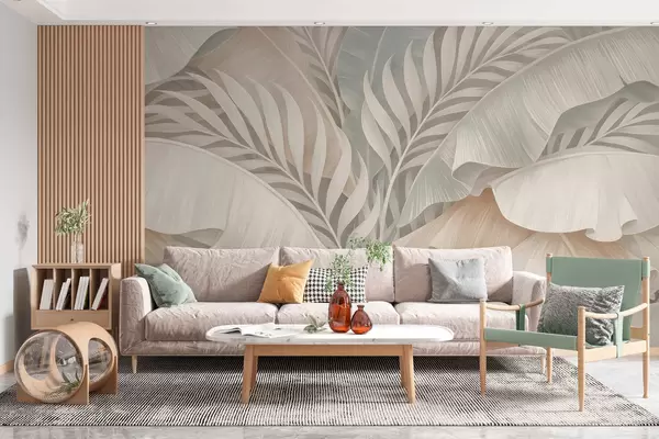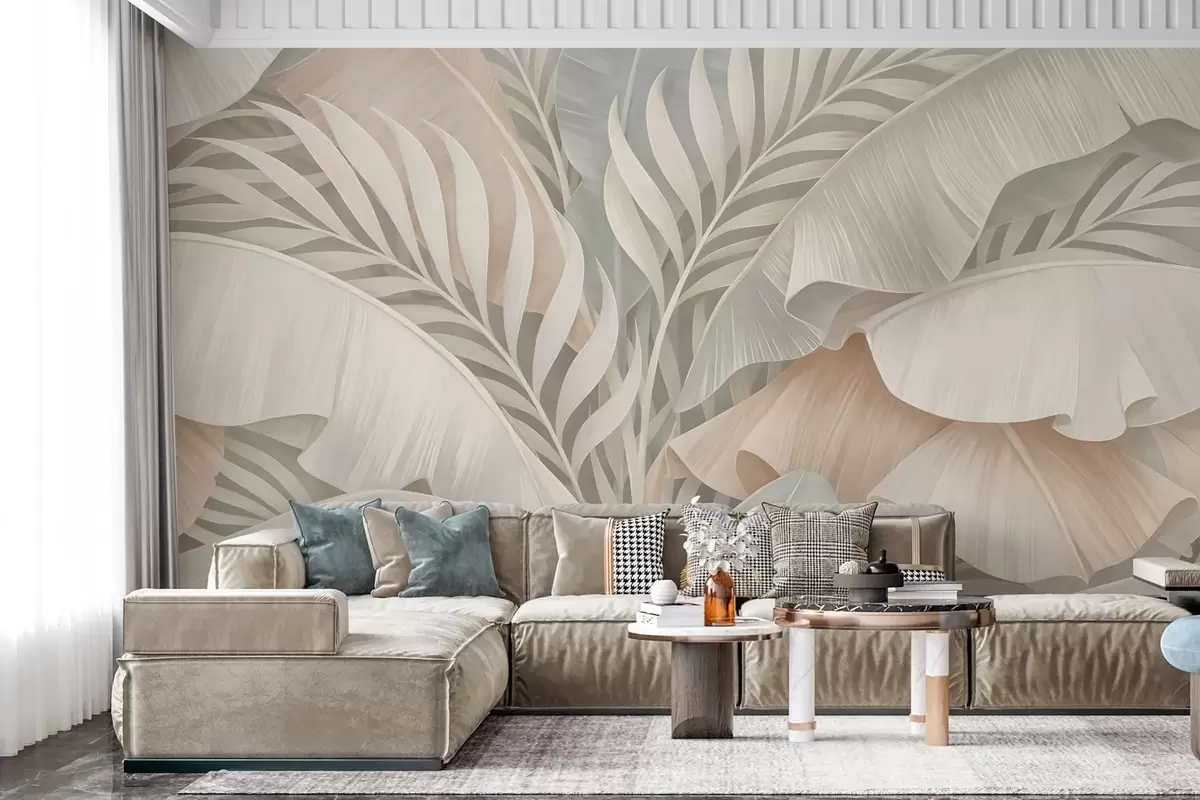 Carta da parati grandi foglie tropicali nei toni del pesca e del turchese opaco nr. w05062