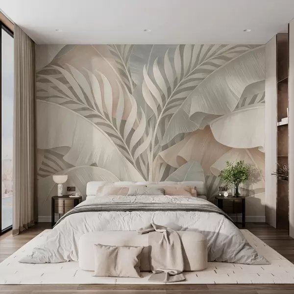 Carta da parati grandi foglie tropicali nei toni del pesca e del turchese opaco nr. w05062