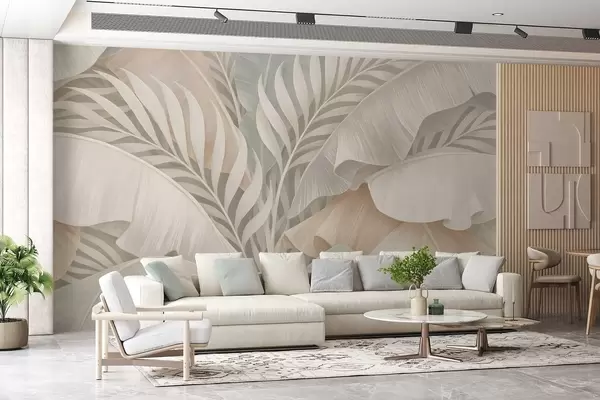 Carta da parati grandi foglie tropicali nei toni del pesca e del turchese opaco nr. w05062