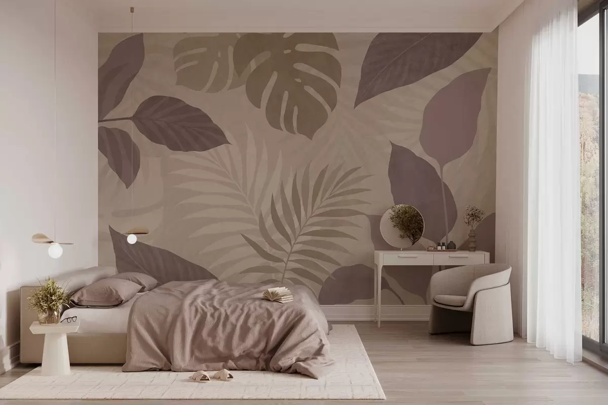 Carta da parati foglie tropicali testurizzate su sfondo sabbioso nr. w05063