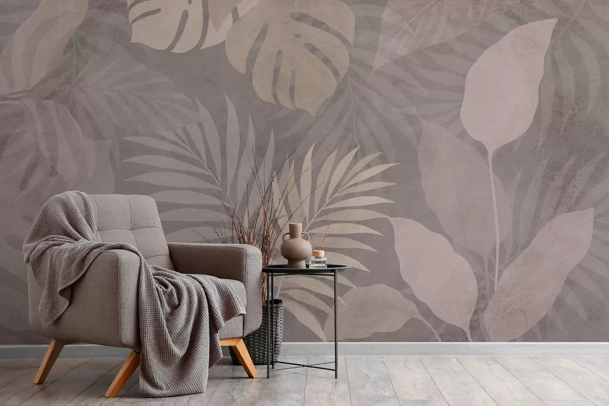 Carta da parati foglie tropicali testurizzate su sfondo grigio nr. w05063v1
