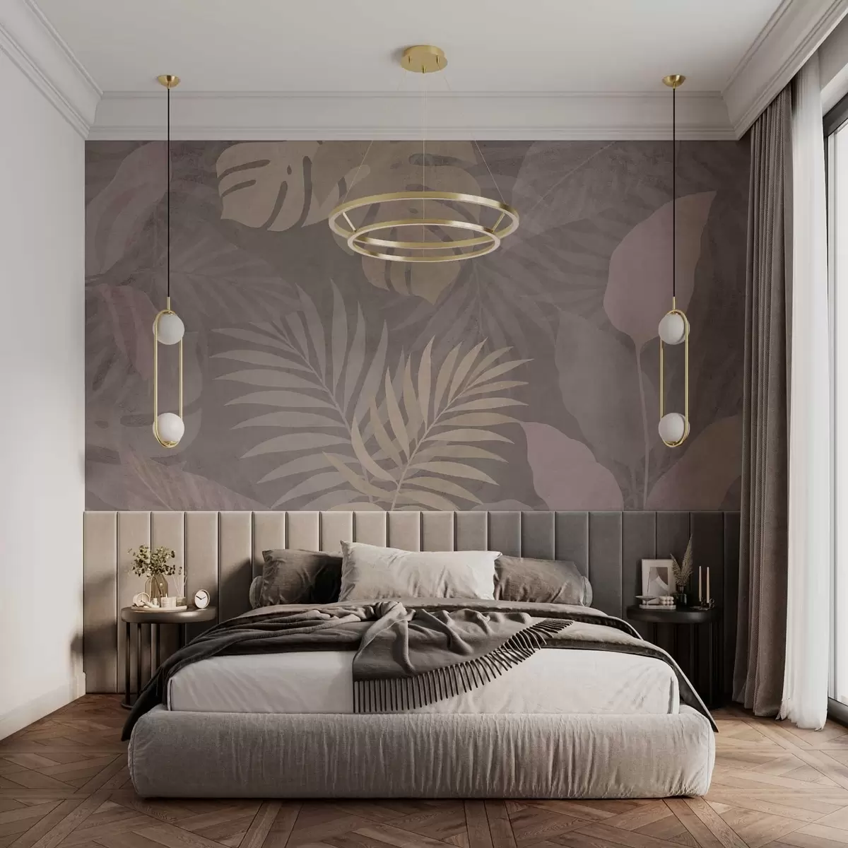 Carta da parati foglie tropicali testurizzate su sfondo grigio nr. w05063v1
