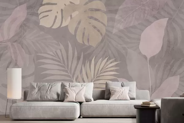 Carta da parati foglie tropicali testurizzate su sfondo grigio nr. w05063v1
