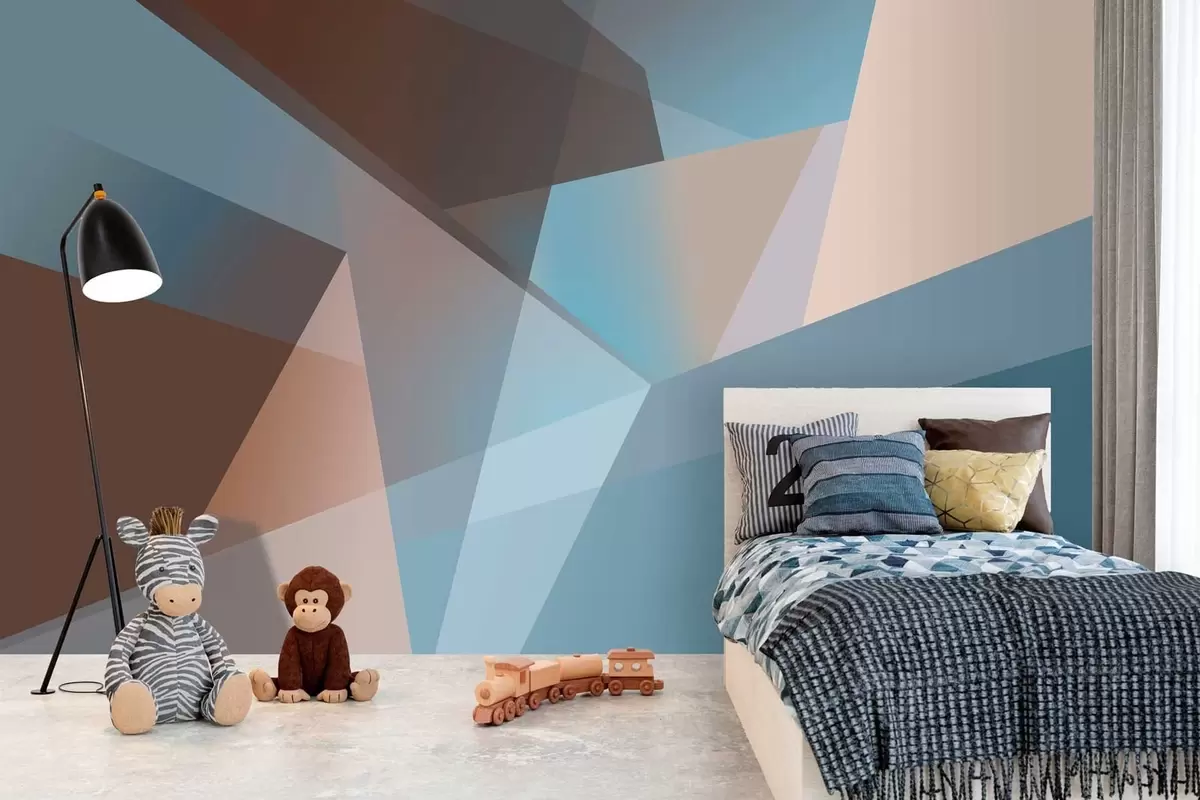 Carta da parati geometria astratta nei toni del blu e del marrone nr. w05064