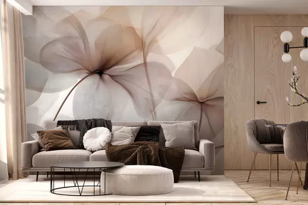 Carta da parati fiori semitrasparenti con venature nr. w05070
