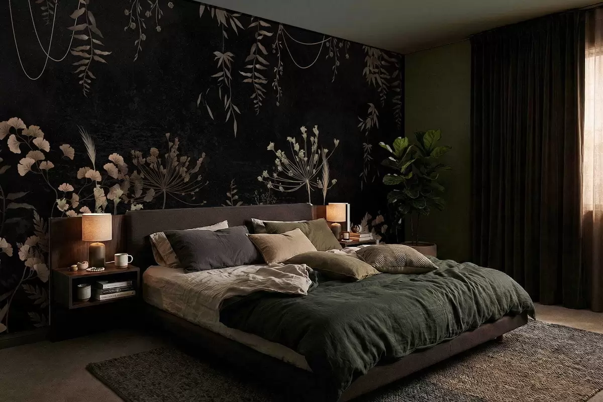 Carta da parati Motivo botanico scuro con fiori e foglie nr. w05092