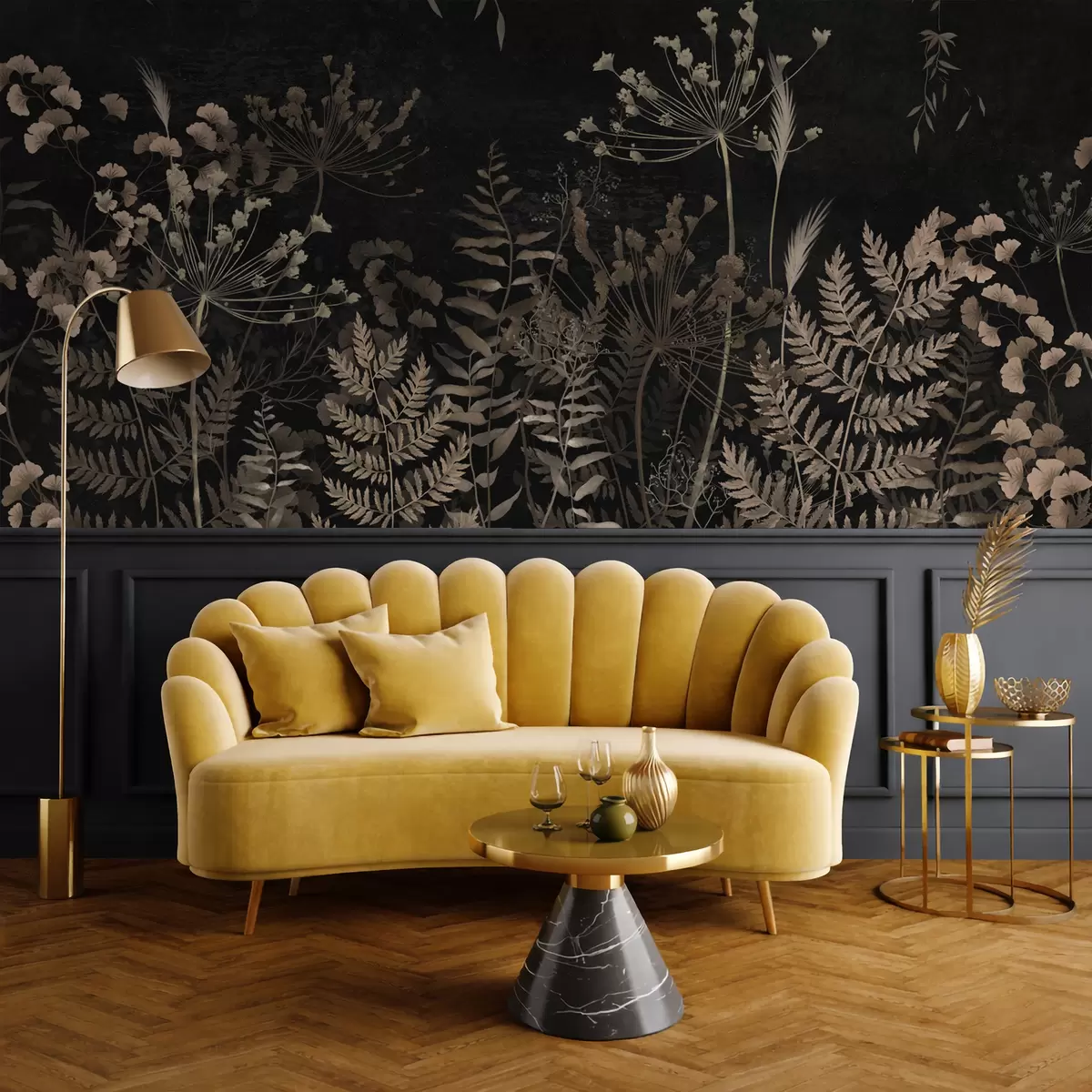 Carta da parati Motivo botanico scuro con fiori e foglie nr. w05092