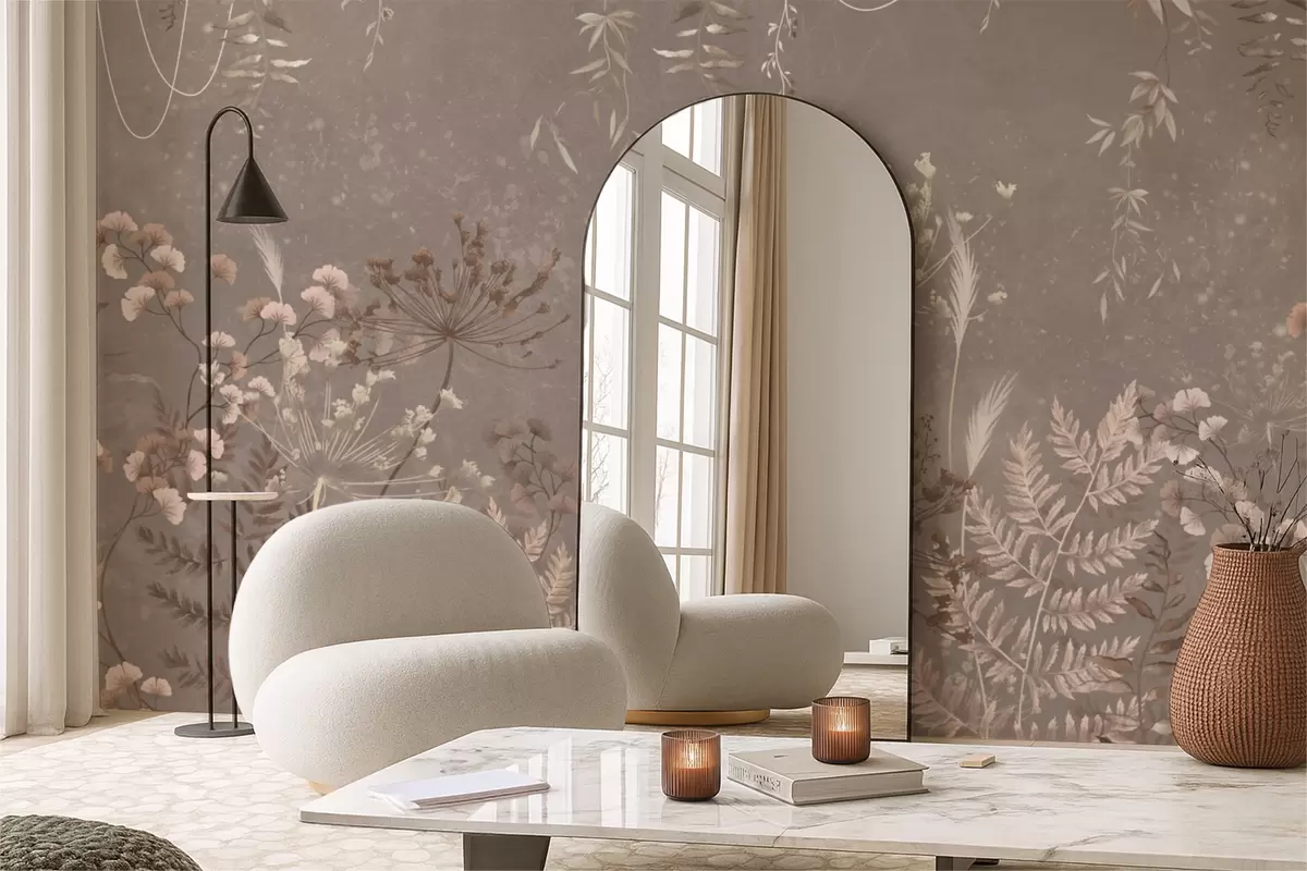 Carta da parati Motivo botanico leggero con fiori e foglie nr. w05092v1