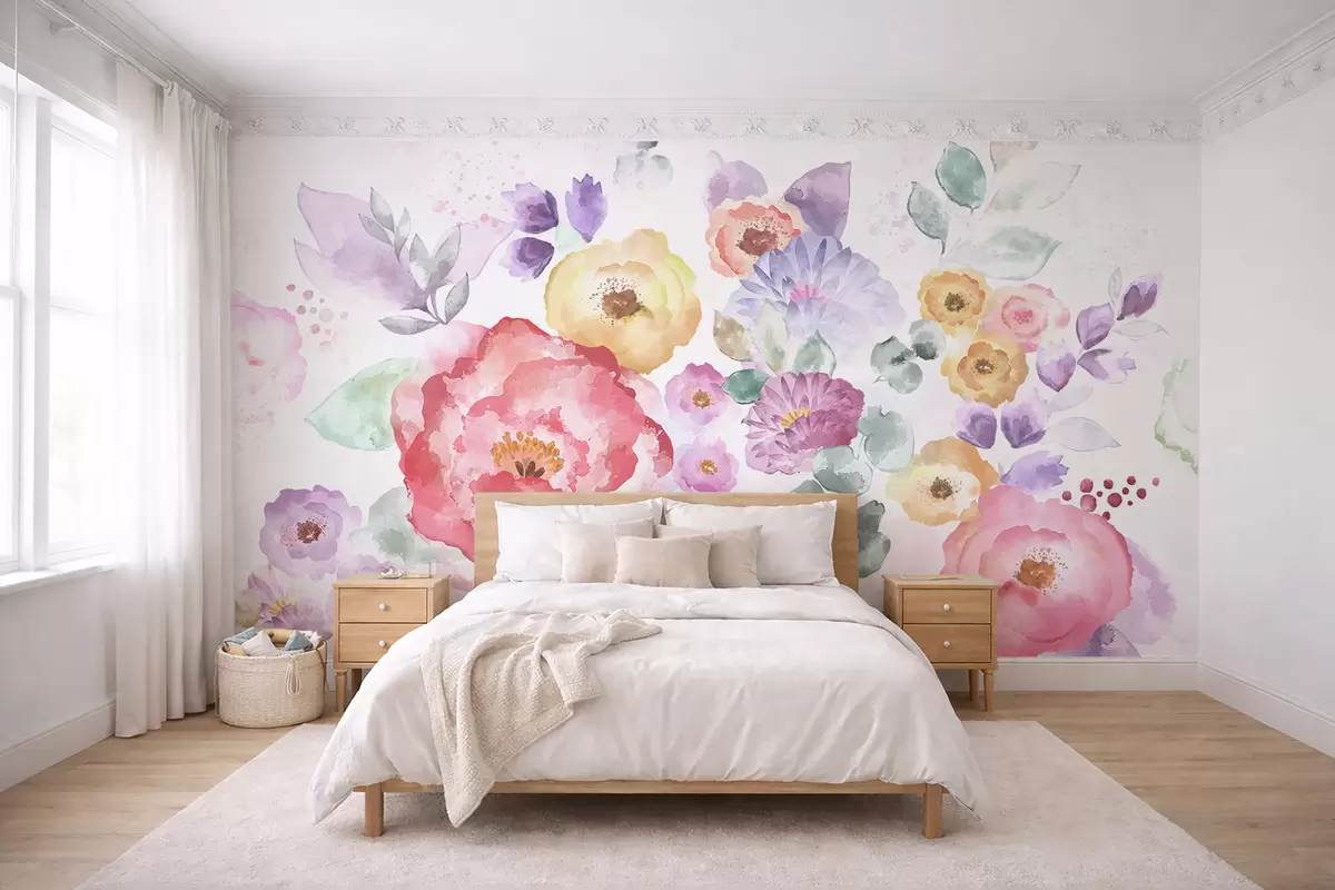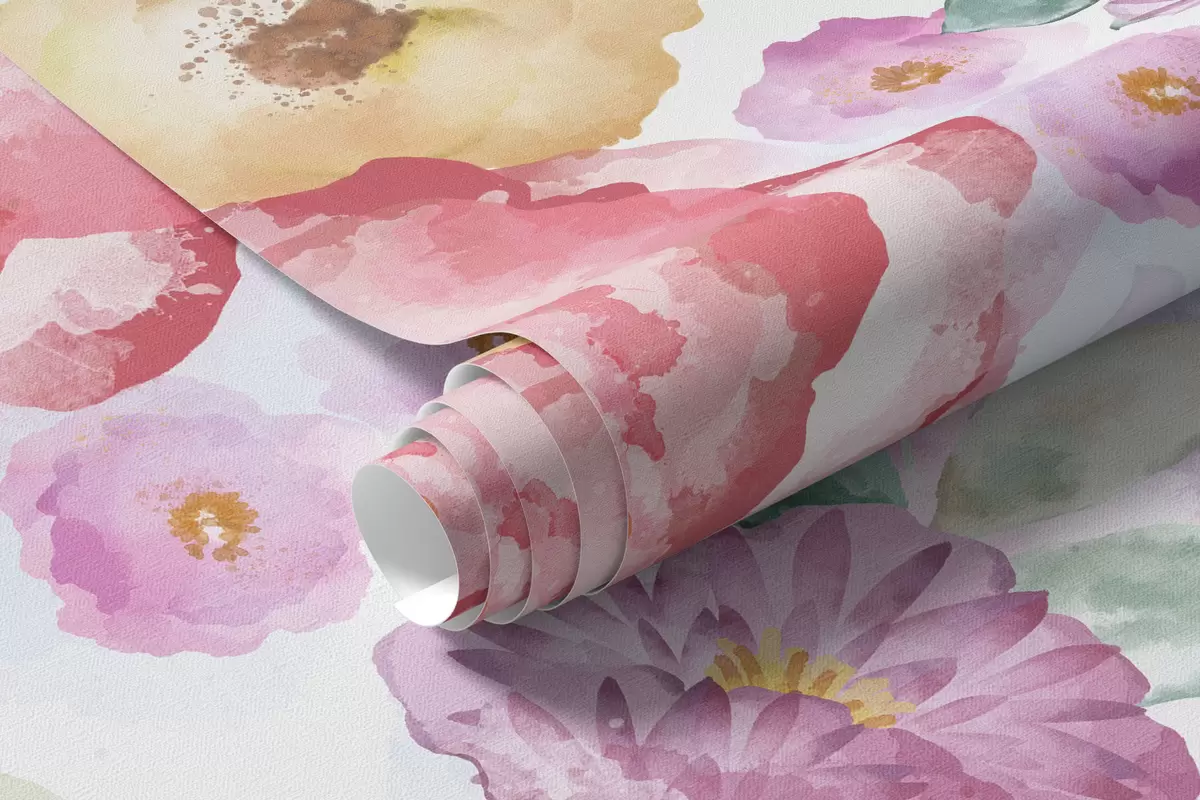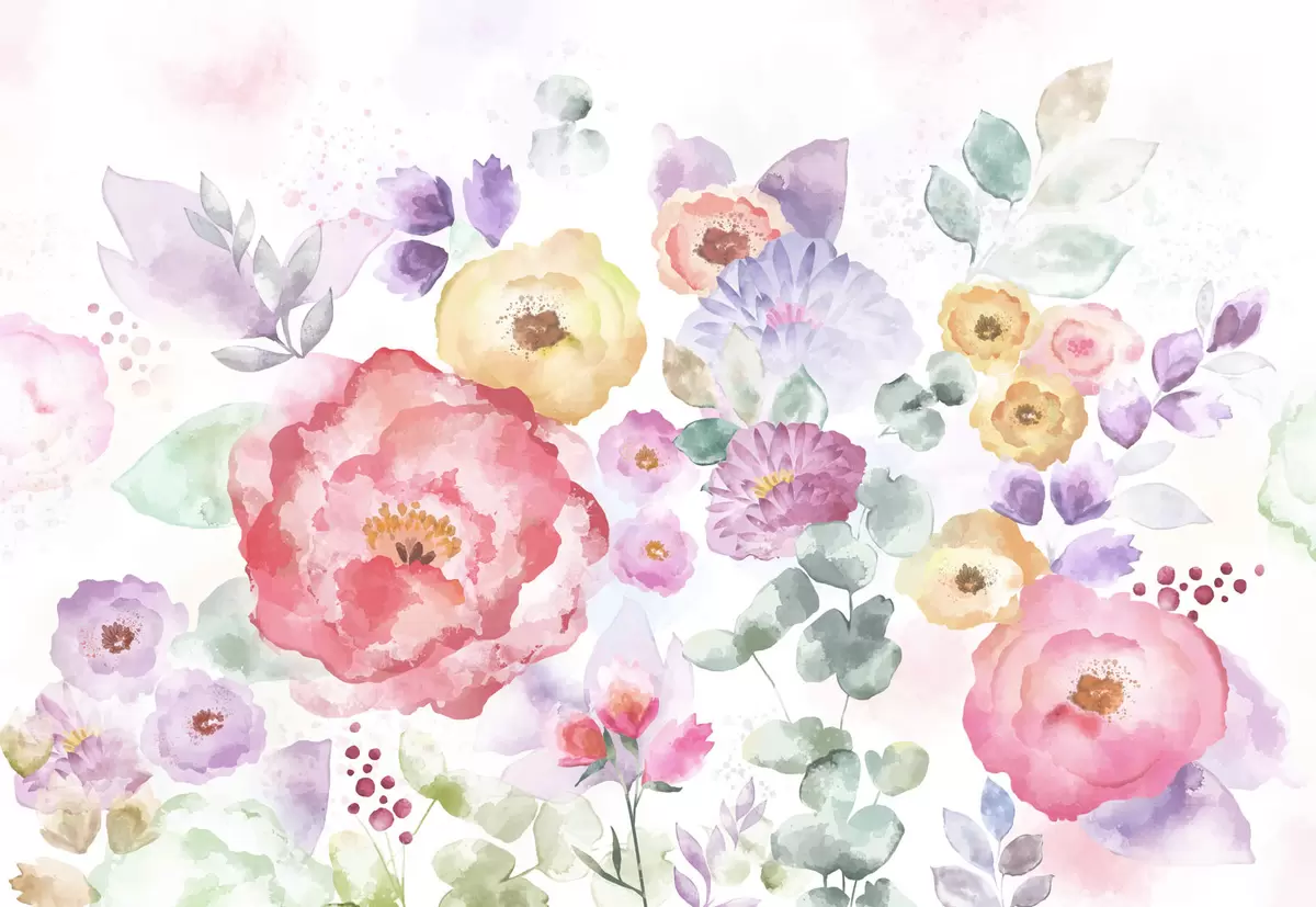 Carta da parati Fiori acquerellati in colori pastello su sfondo chiaro nr. w05093v1
