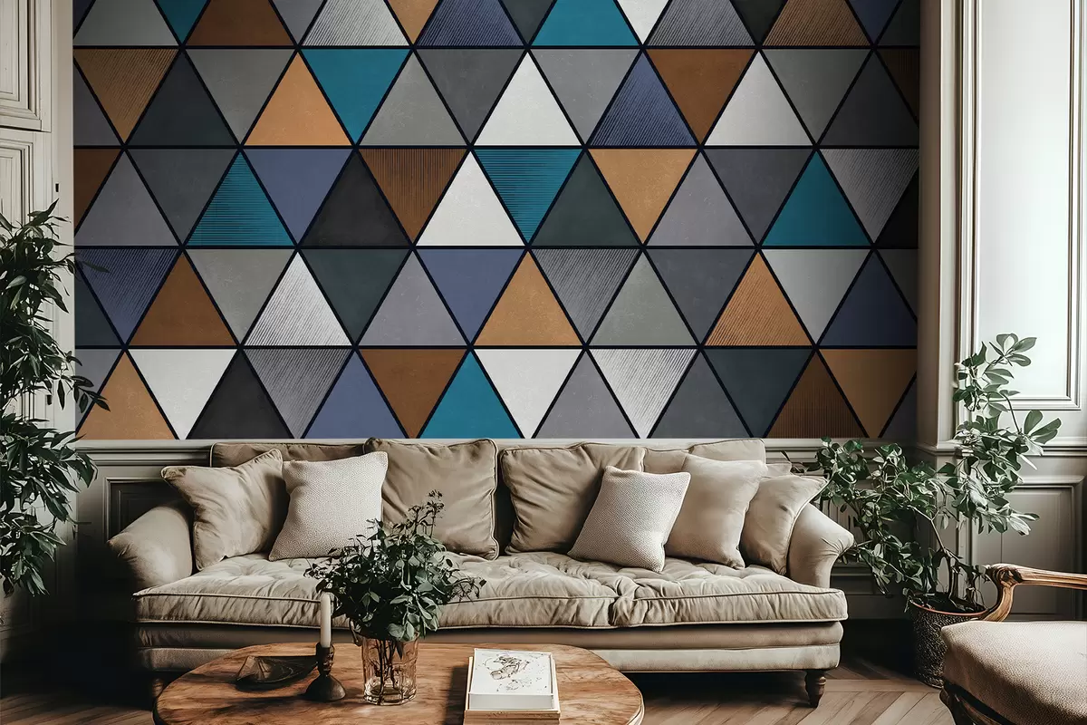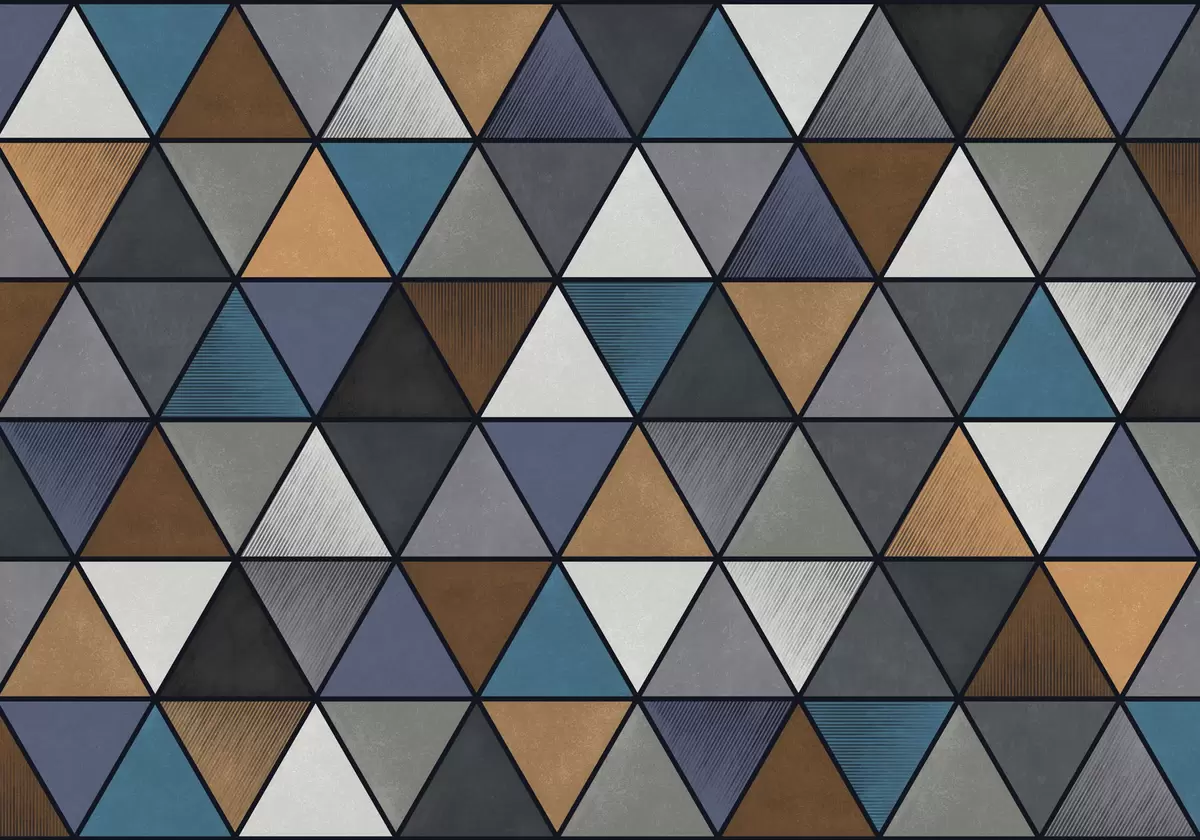 Carta da parati Motivo geometrico triangolare nei toni del blu e dei colori caldi nr. w05095