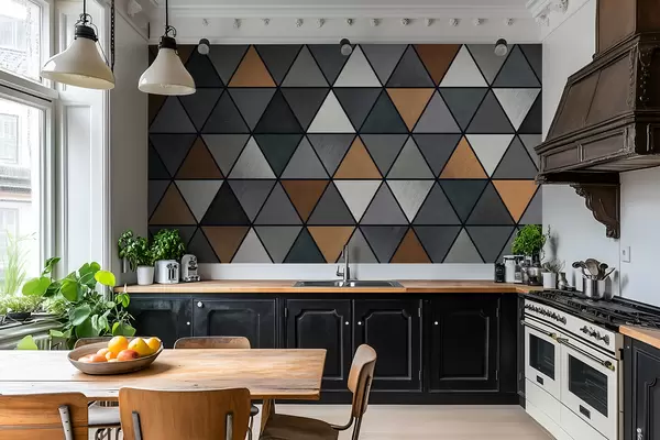 Carta da parati Motivo a triangoli con tonalità grigie e calde nr. w05095v1