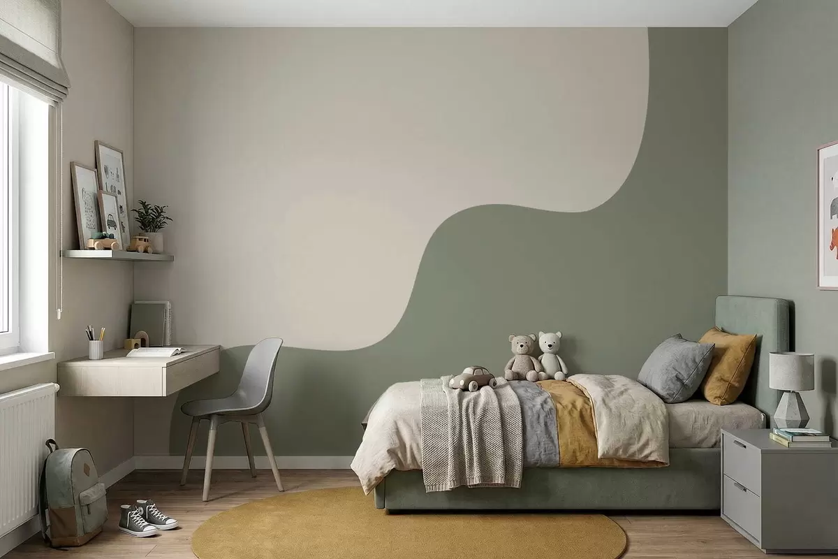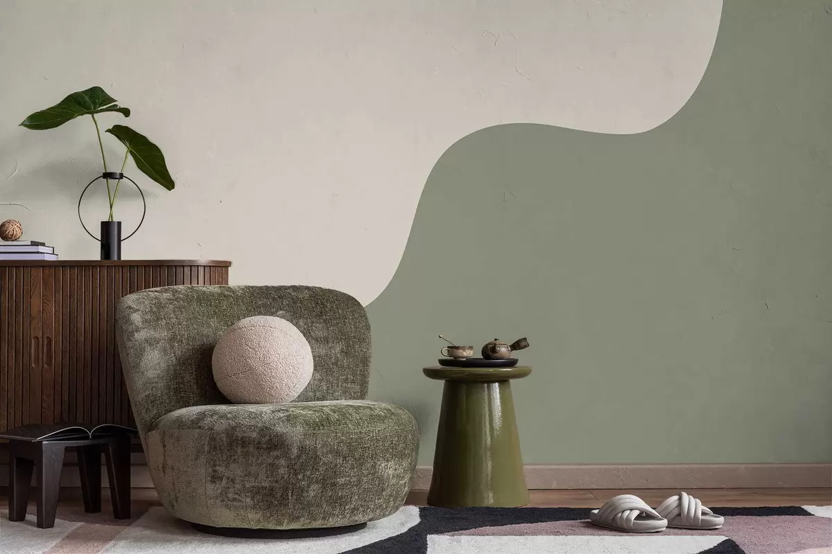 Carta da parati Forme astratte morbide nei toni del beige chiaro e del verde nr. w05097