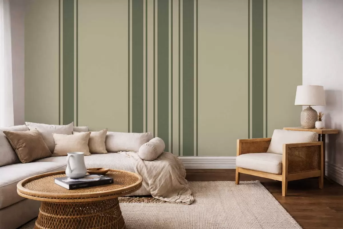 Carta da parati Righe verticali in una palette di colori tenui verde e beige nr. w05098