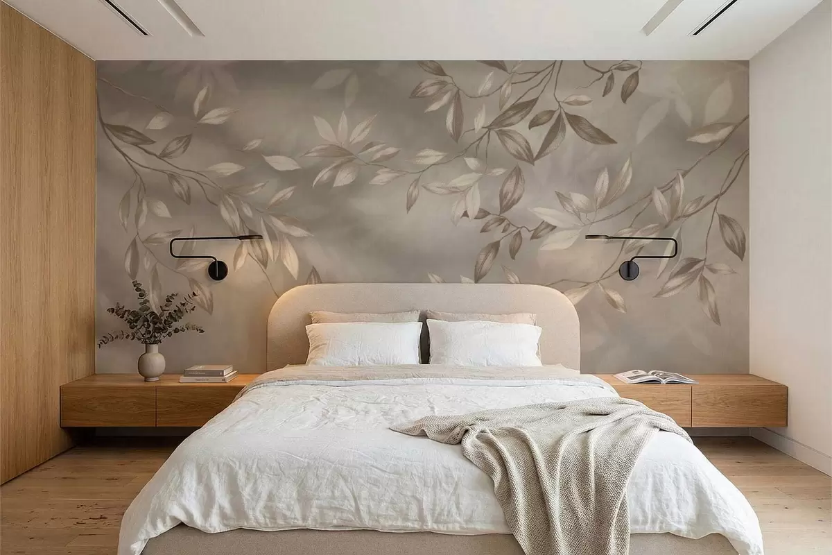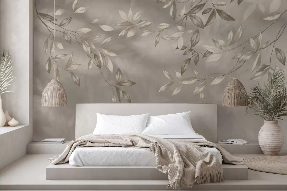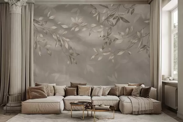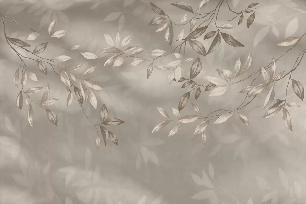Carta da parati Eleganti rami frondosi nei toni del beige su sfondo chiaro nr. w05113