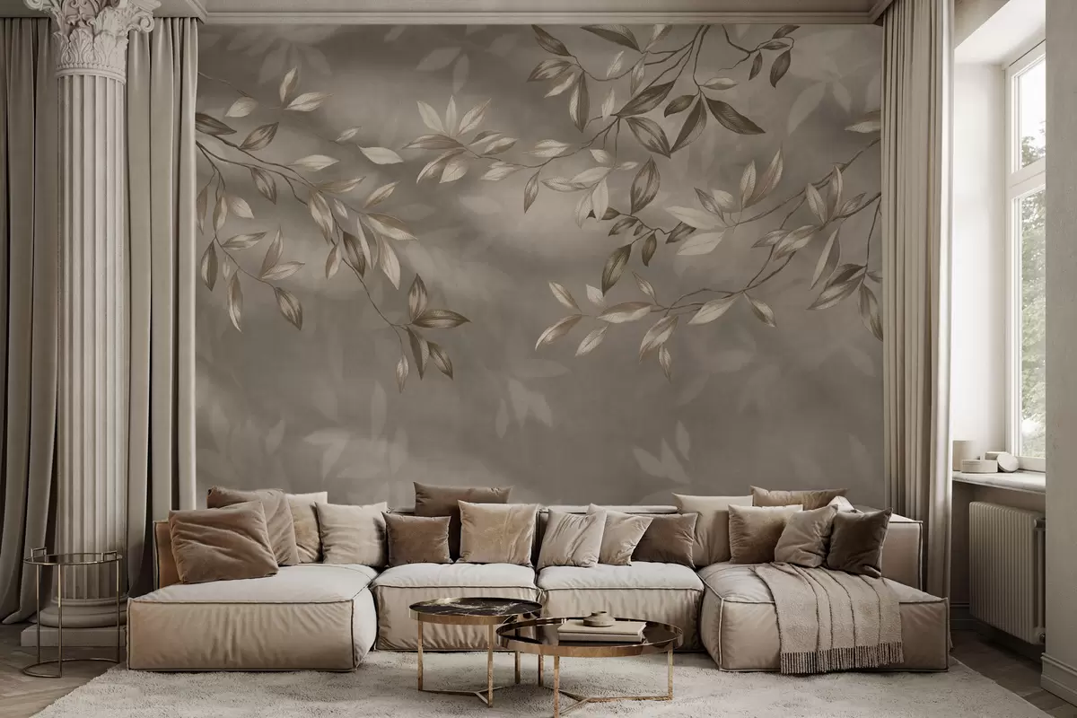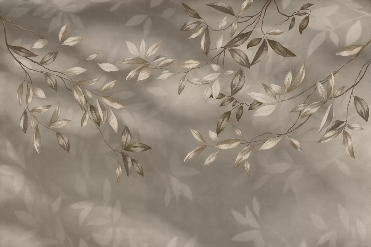 Carta da parati Delicati rami frondosi nei toni del beige su sfondo chiaro nr. w05113v2