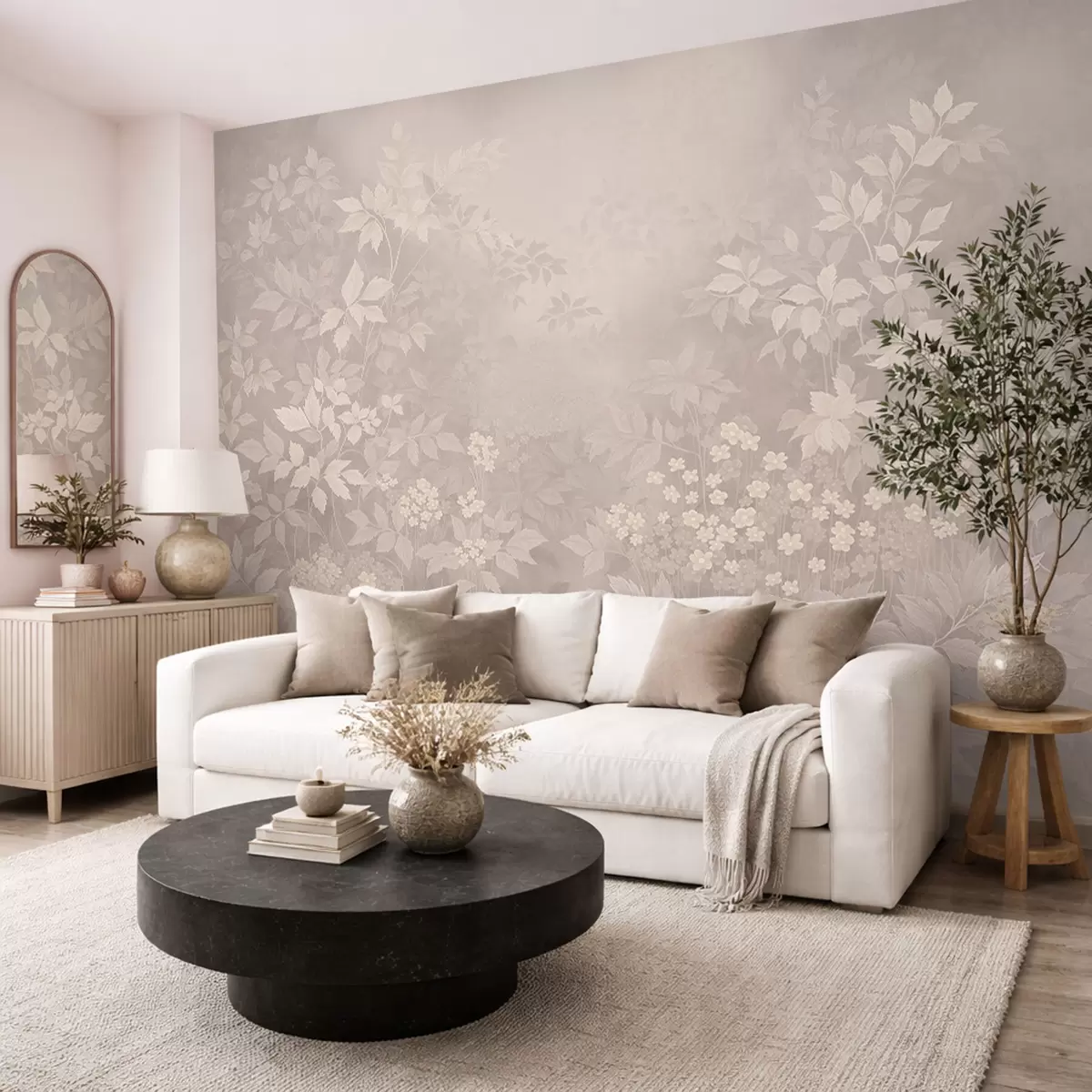Carta da parati Ornamento botanico leggero con foglie e piccoli fiori nr. w05115