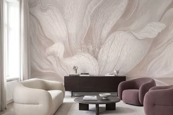 Carta da parati Fiore astratto nei toni del beige chiaro nr. w05119