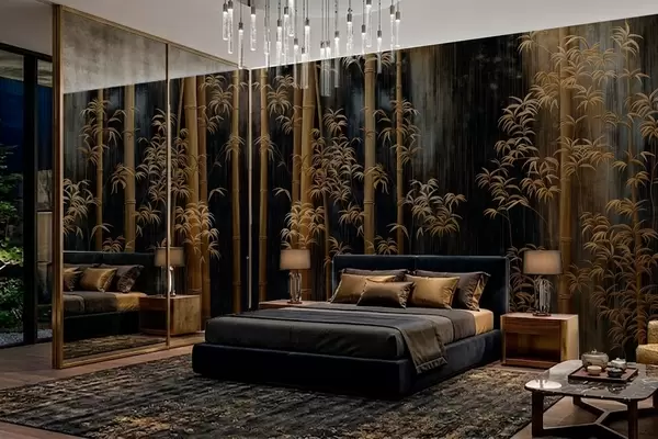 Carta da parati Bambù scuro su sfondo nero nr. w05120