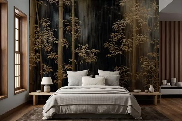Carta da parati Bambù scuro su sfondo nero nr. w05120