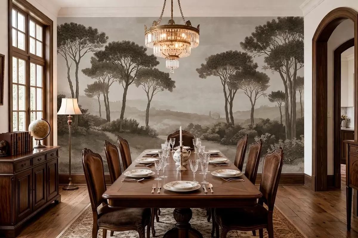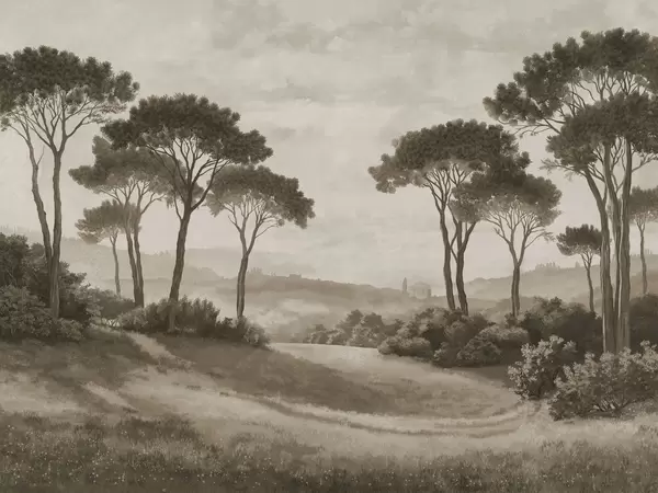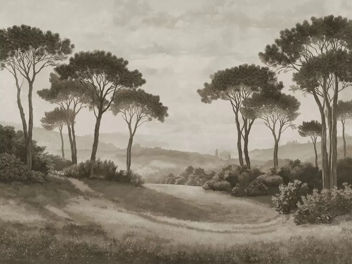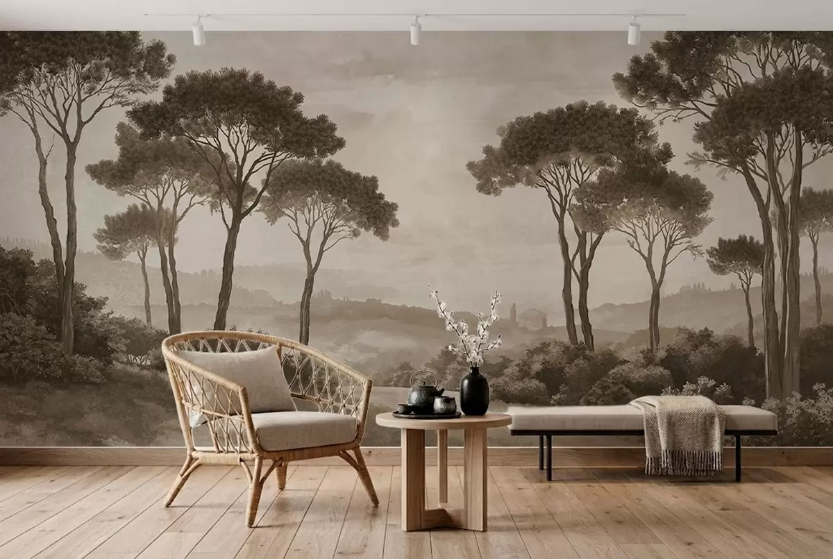 Carta da parati Paesaggio con alberi in tonalità seppia vintage nr. w05122v2