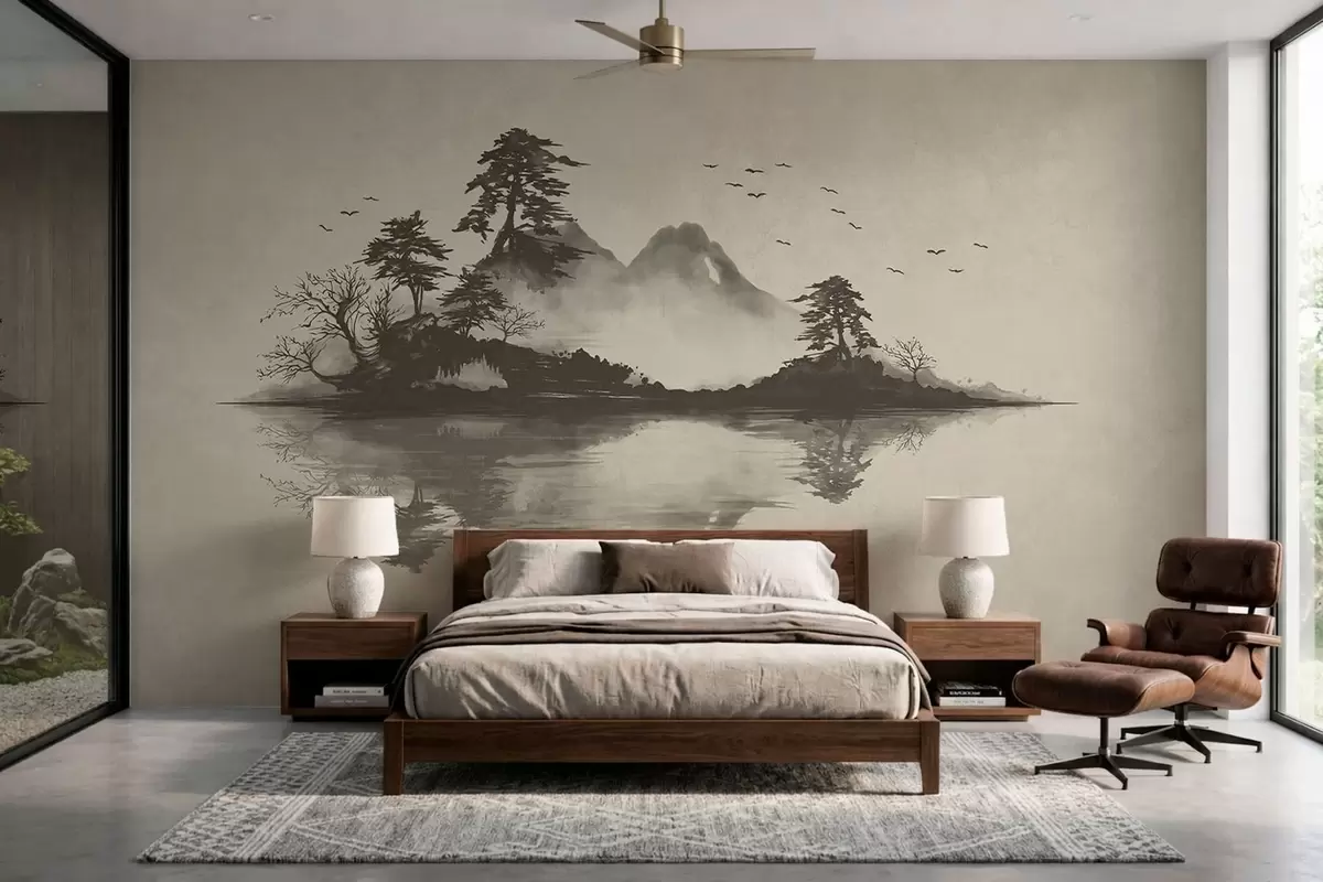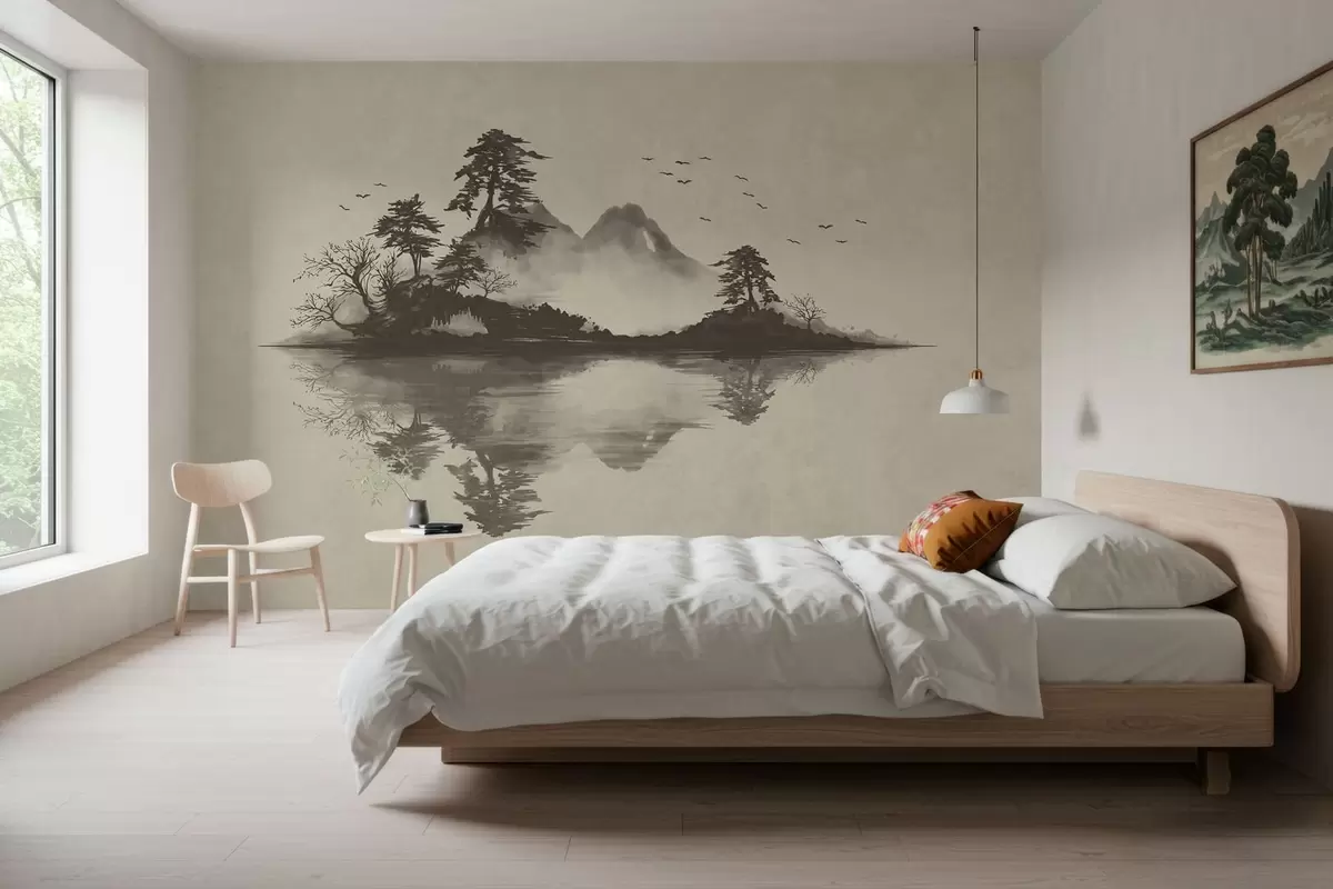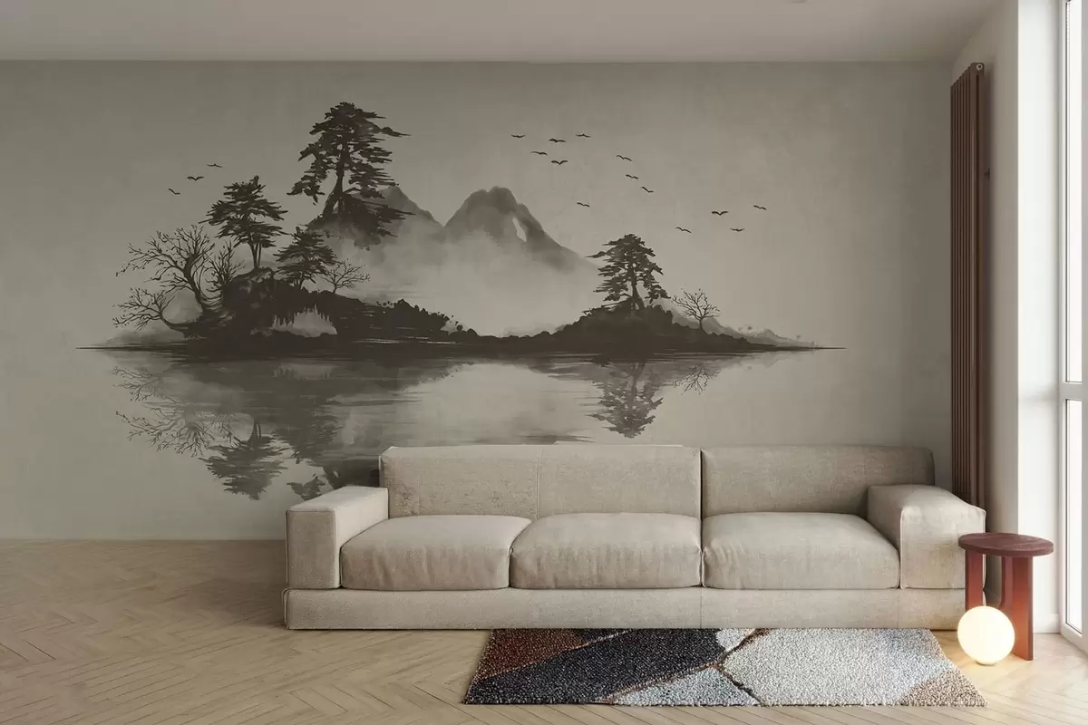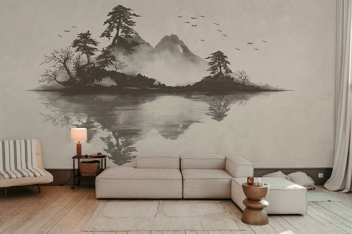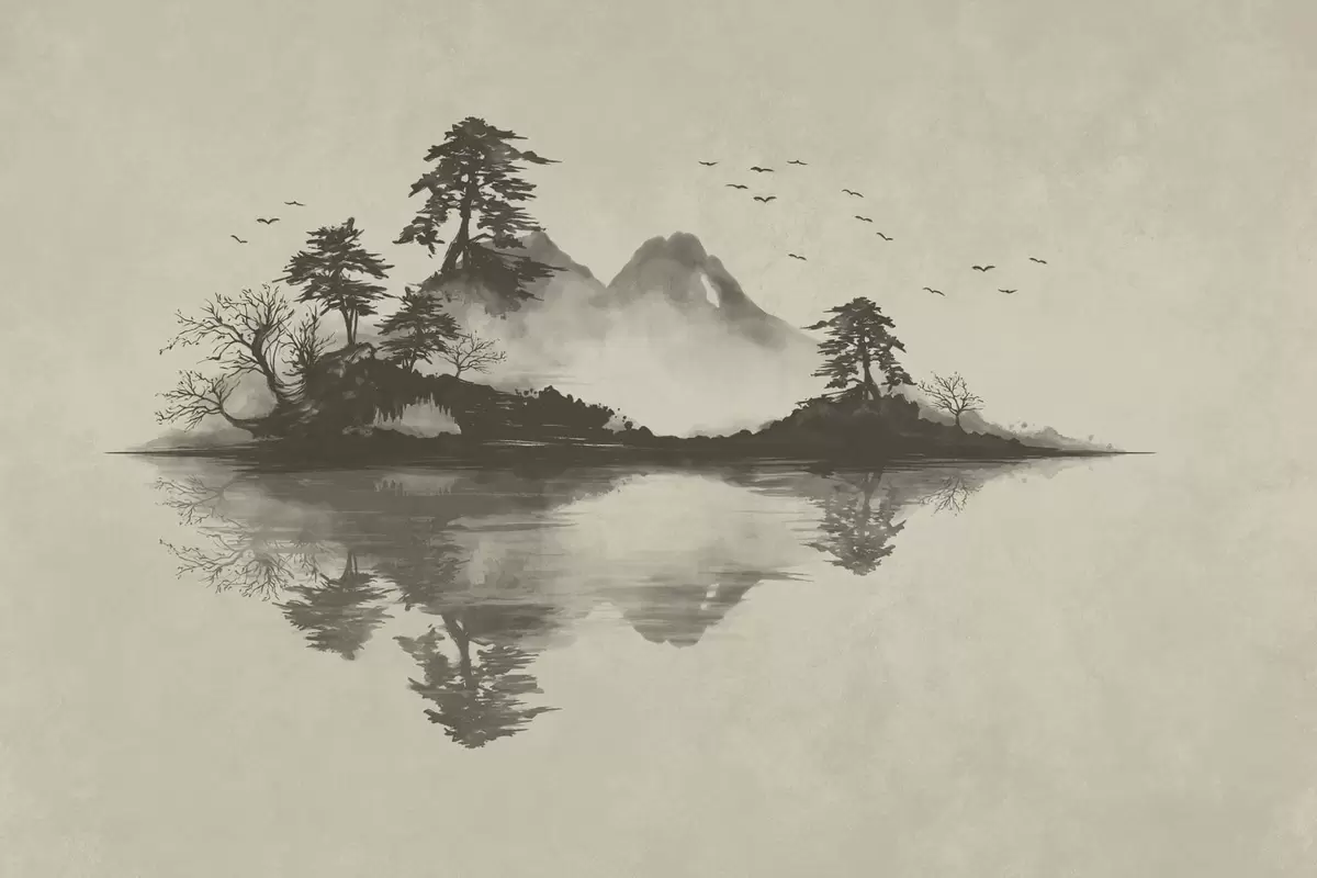 Carta da parati Paesaggio montano in stile sumi-e dai delicati toni di grigio nr. w05124v1