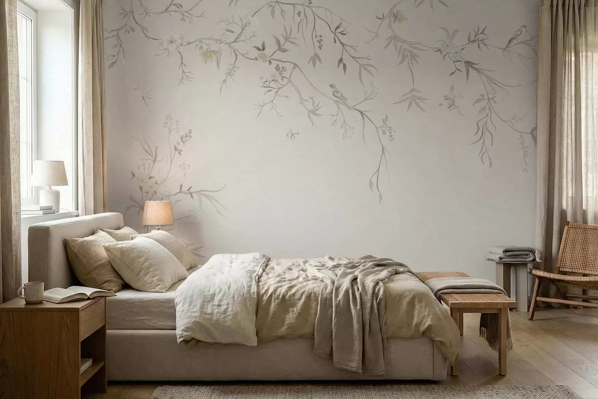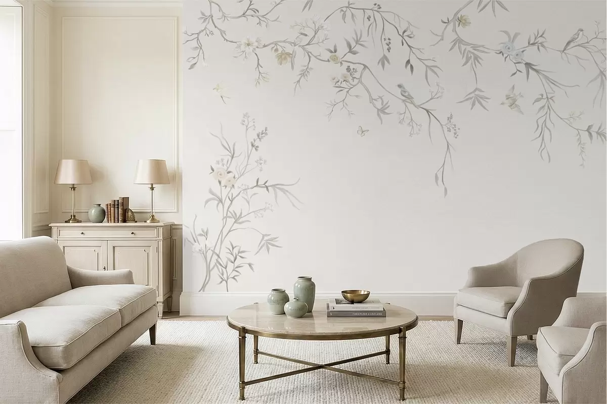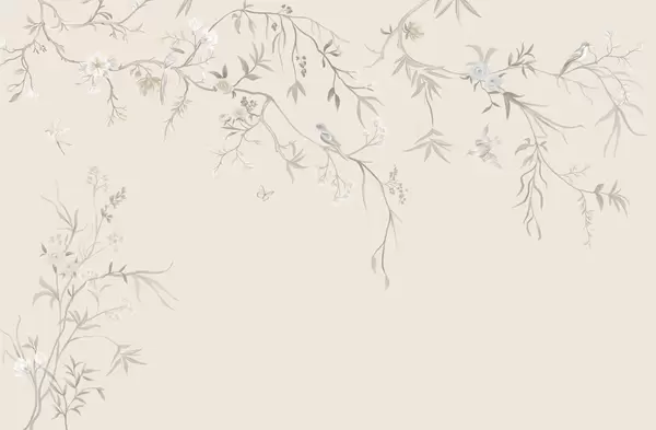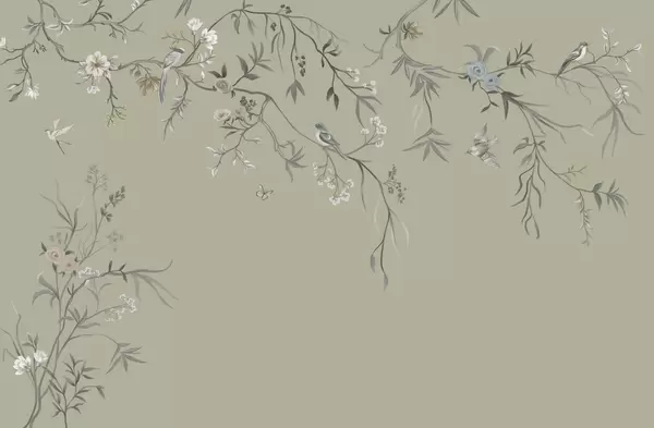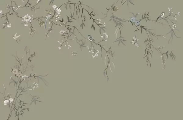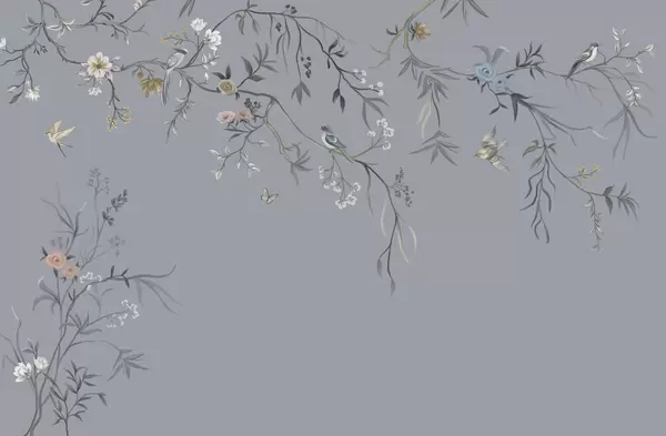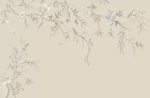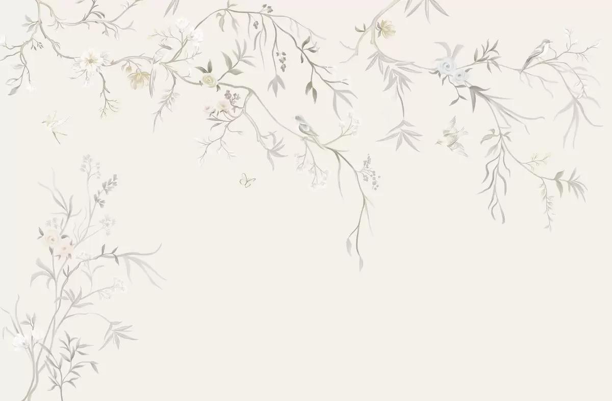 Carta da parati Delicati fiori e uccellini su sfondo gessato nr. w05127