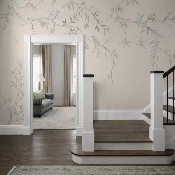 Carta da parati Rami fioriti con uccelli su sfondo chiaro nr. w05127v7