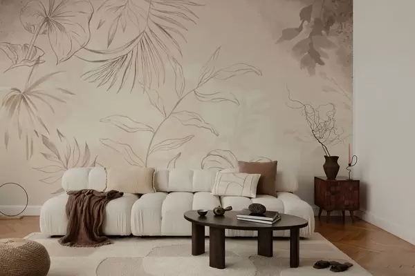 Carta da parati Piante lineari su sfondo beige testurizzato nr. w05128