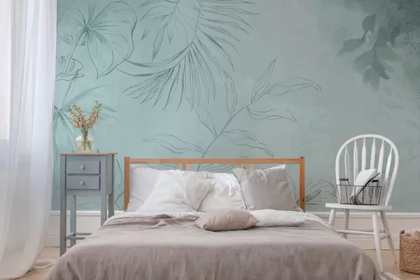 Carta da parati Piante lineari su sfondo verde chiaro nr. w05128v1