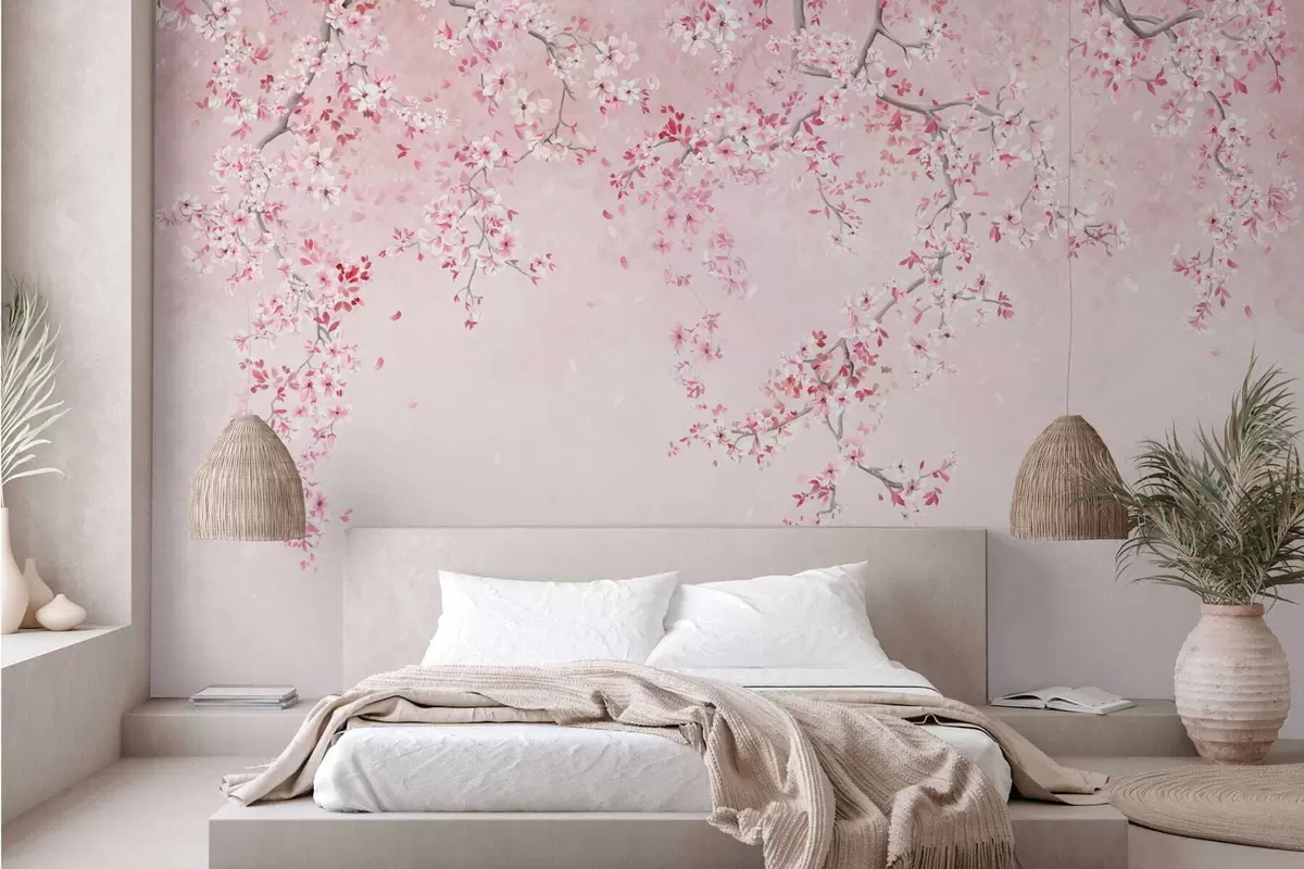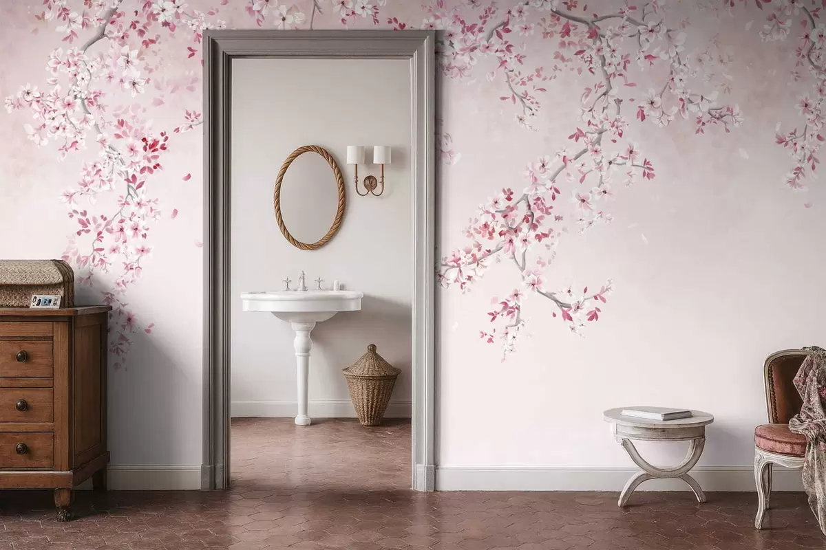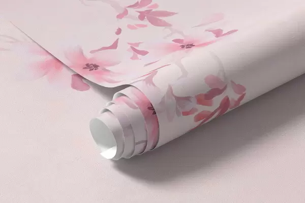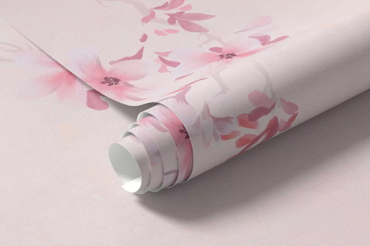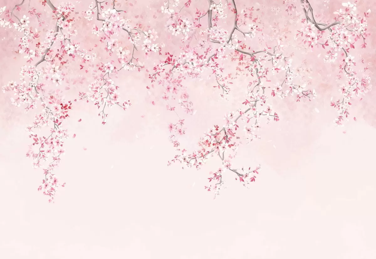 Carta da parati Rami con fiori rosa su uno sfondo pastello tenue nr. w05129v1