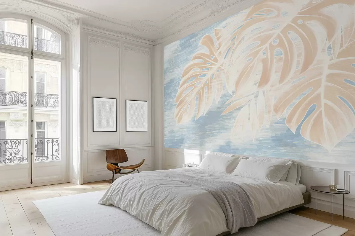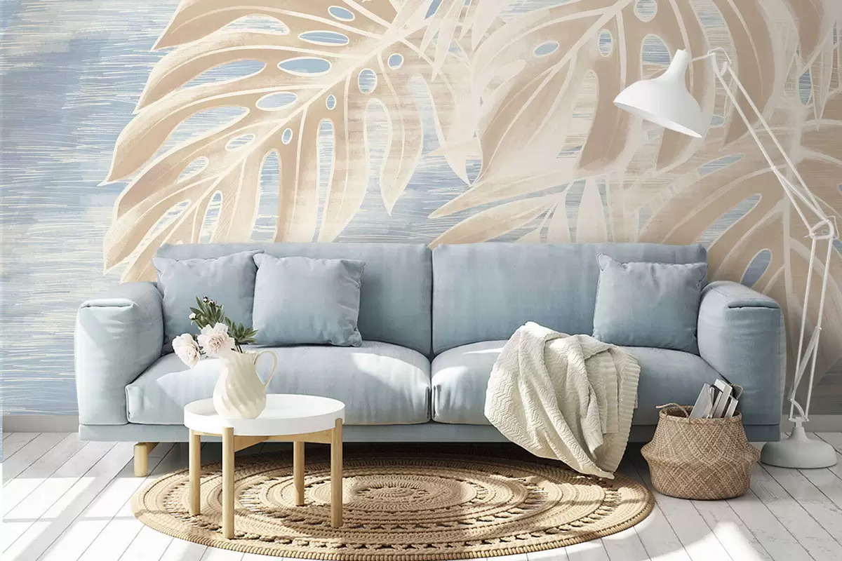Carta da parati Foglie astratte in caldi toni beige su sfondo chiaro nr. w05130