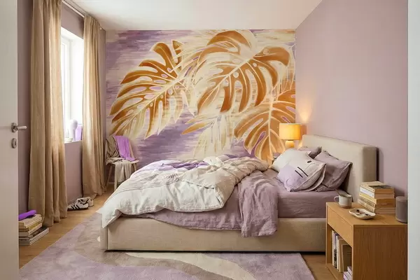 Carta da parati Foglie dai toni caldi dell'arancio su sfondo viola nr. w05130v2