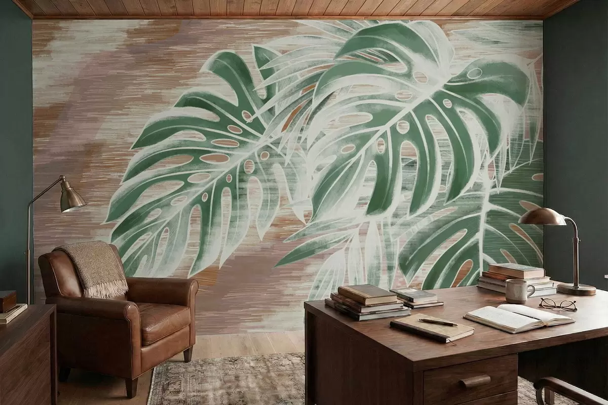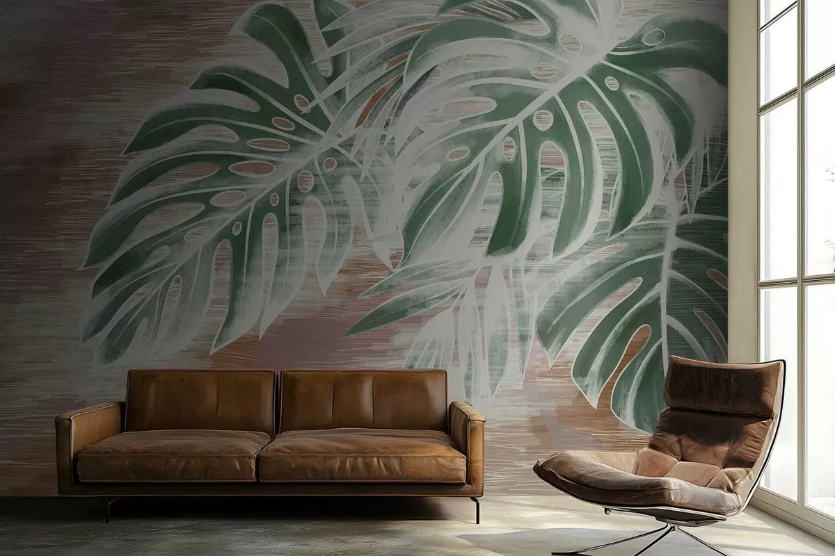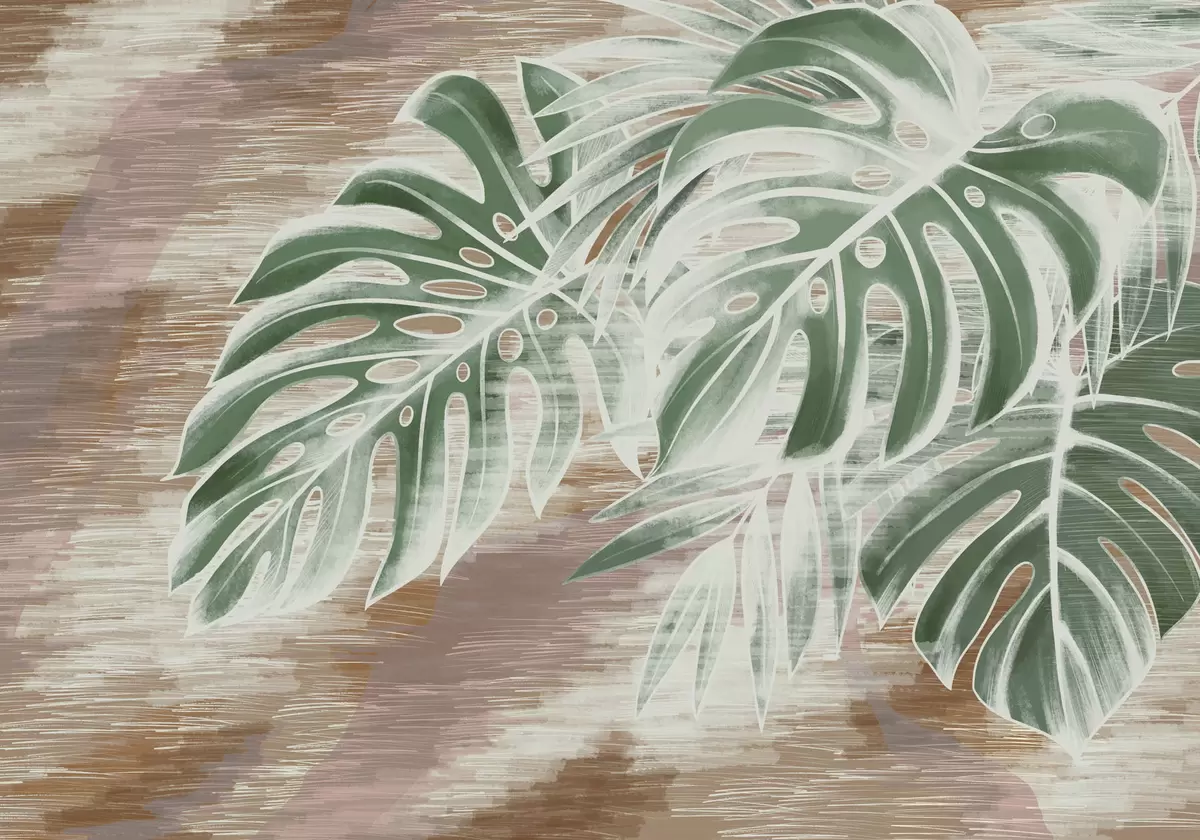 Carta da parati Foglie verdi su una base astratta dalla texture calda nr. w05130v3