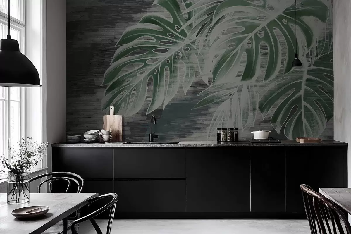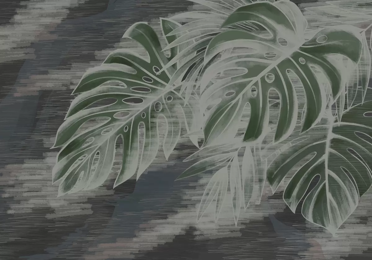 Carta da parati Foglie verde scuro su sfondo scuro testurizzato nr. w05130v4
