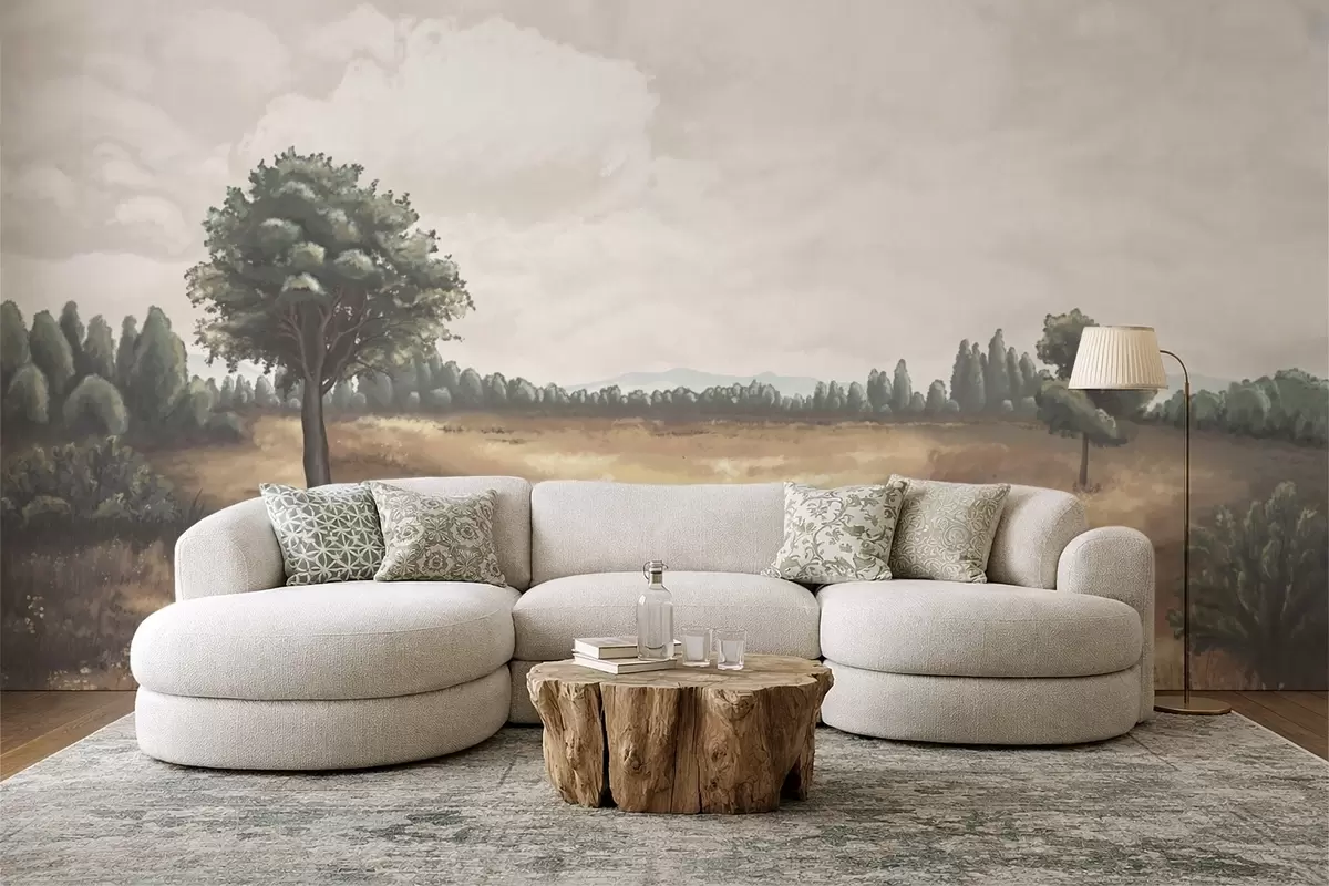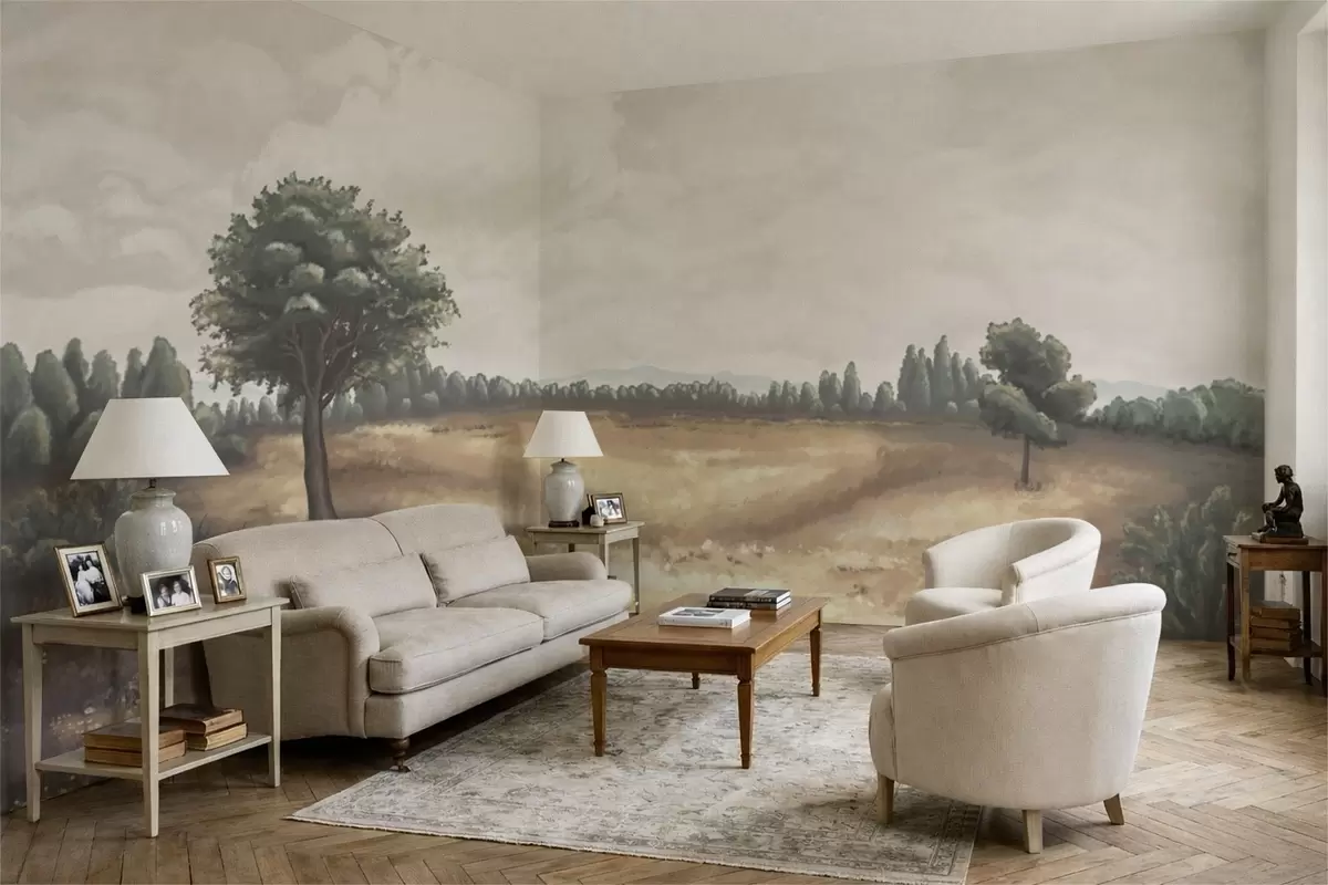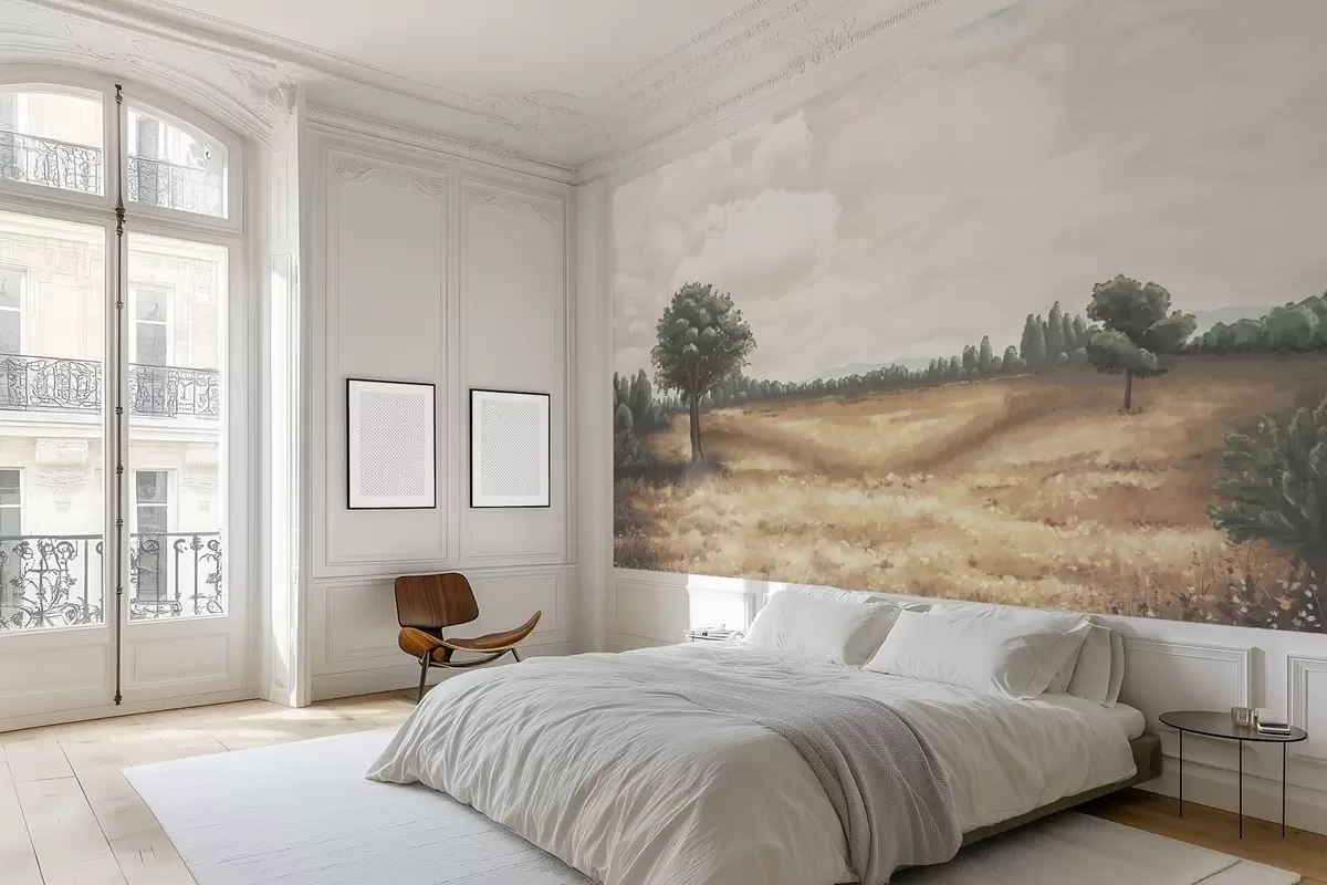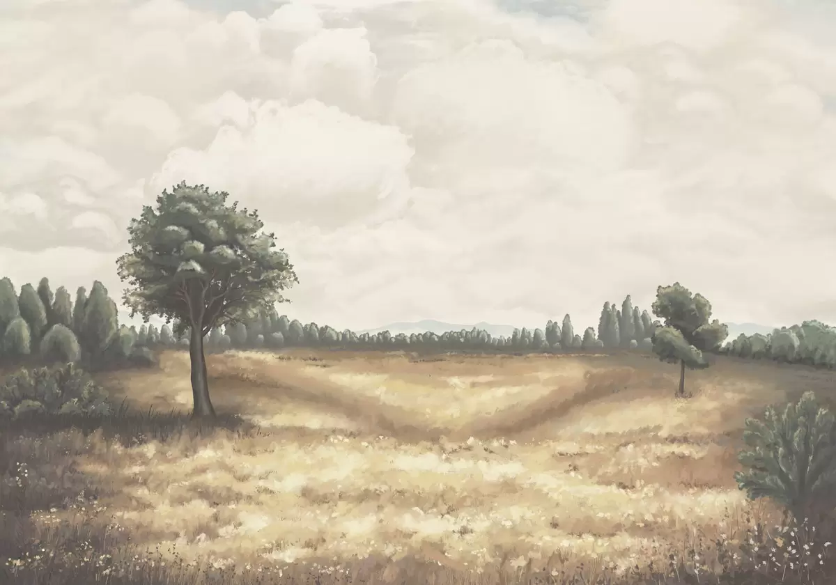 Carta da parati Paesaggio dipinto con alberi e campo aperto nr. w05131