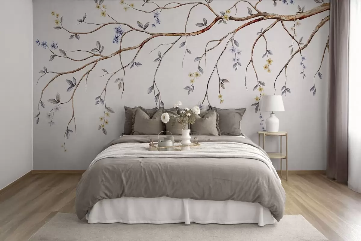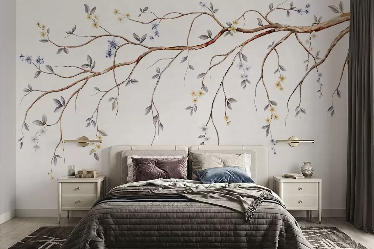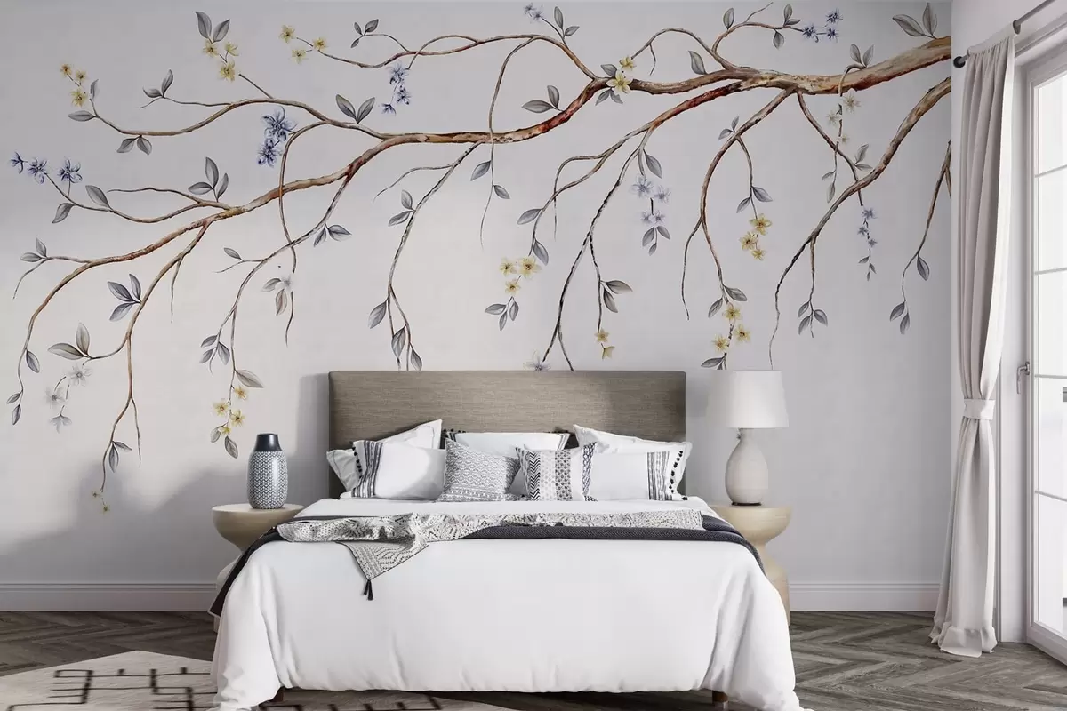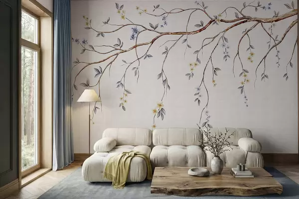 Carta da parati Rami sottili con piccoli fiori su sfondo chiaro nr. w05145