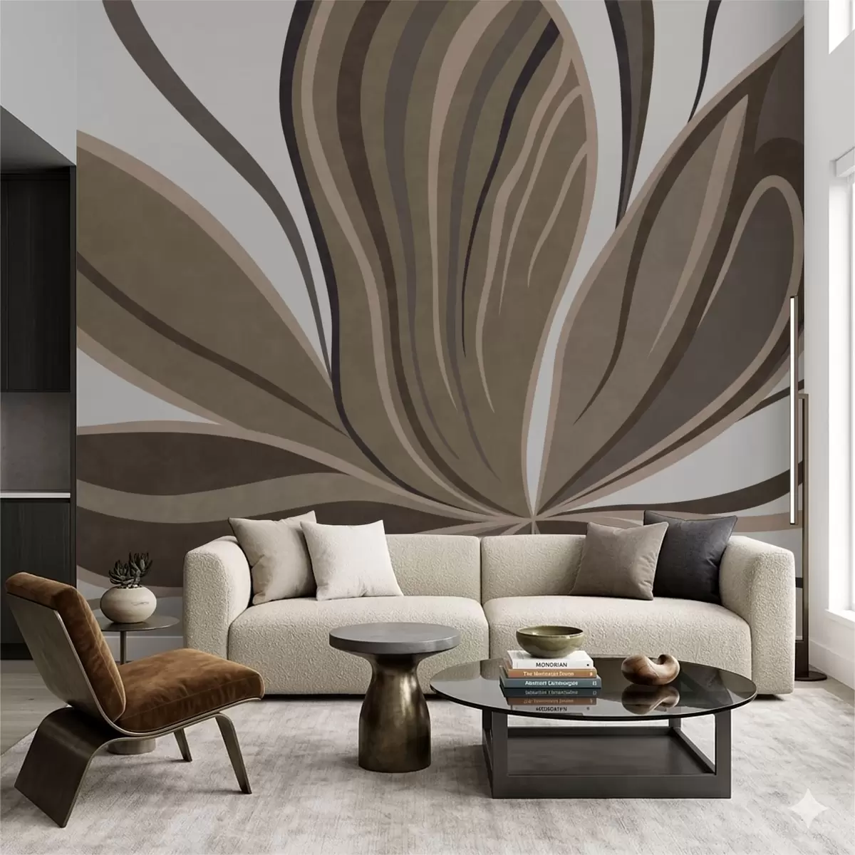 Carta da parati Fiore stilizzato dalle linee sinuose nei toni del marrone nr. w05147