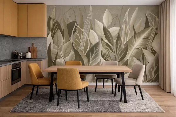 Carta da parati Foglie astratte nei toni del beige e del verde nr. w05148