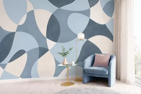 Carta da parati Motivo astratto con forme arrotondate nei toni del blu nr. w05149v2