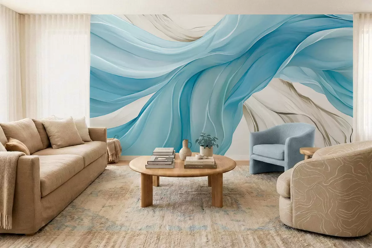 Carta da parati Onde fluenti di tessuto blu nr. w05152v1