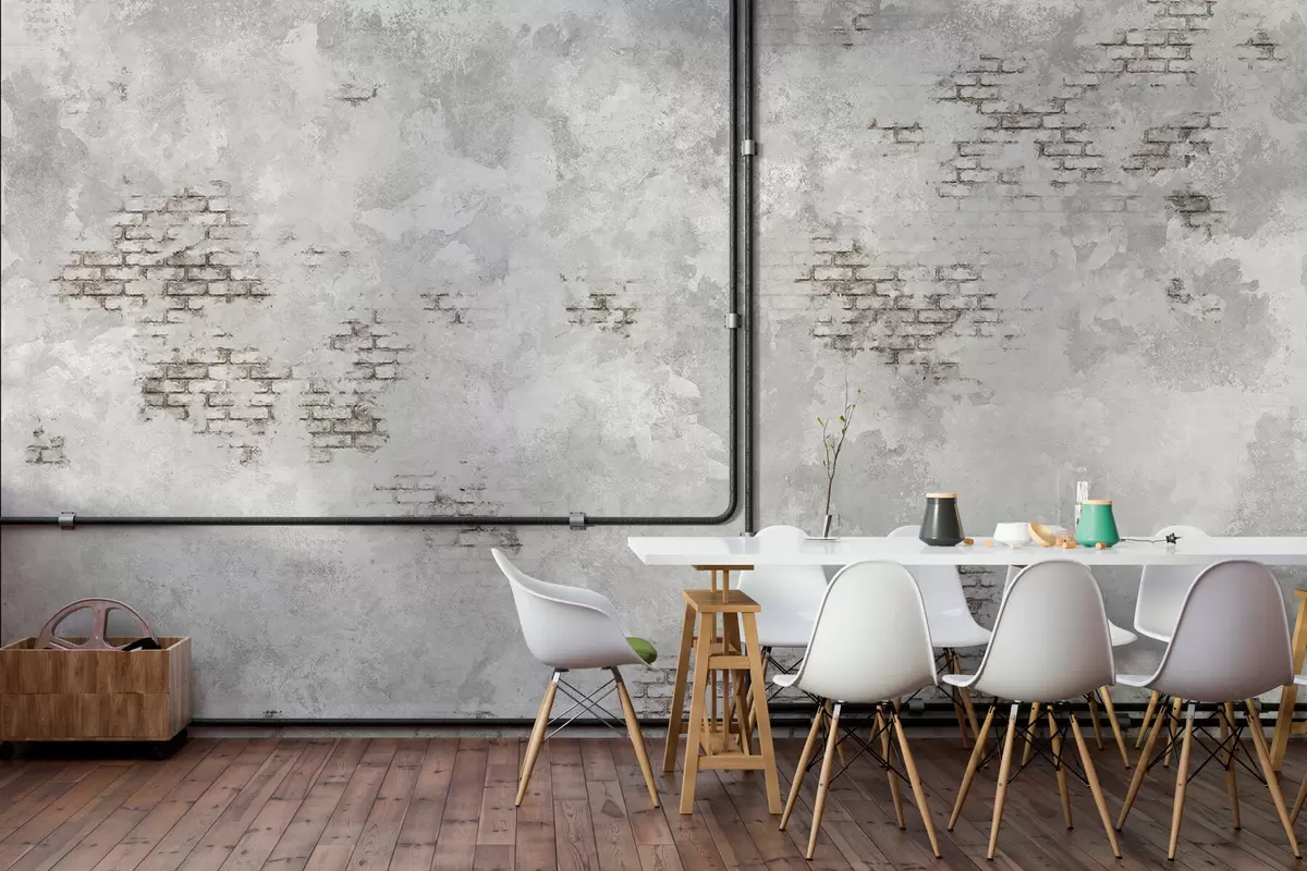 Carta da parati Finitura intonacata in stile grunge con frammenti di mattoni a vista nr. w05161