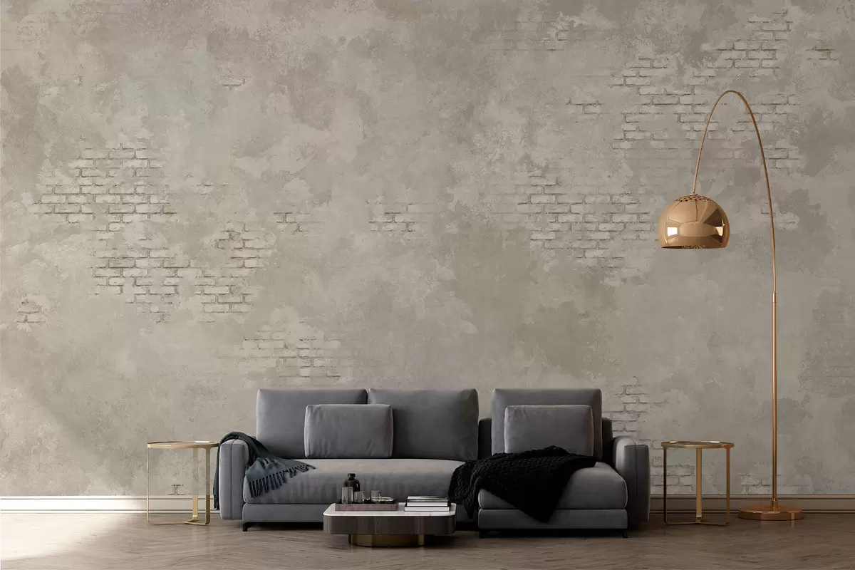 Carta da parati Intonaco grunge chiaro con inserti in mattoni a vista nr. w05161v1