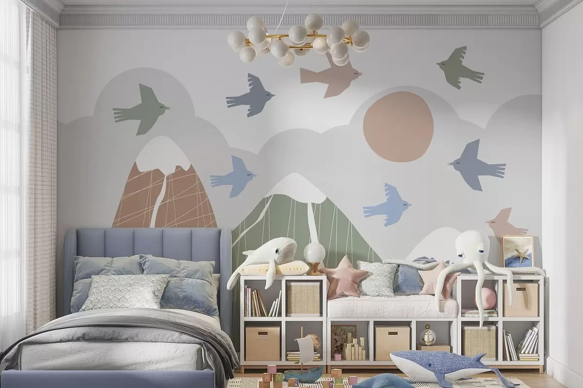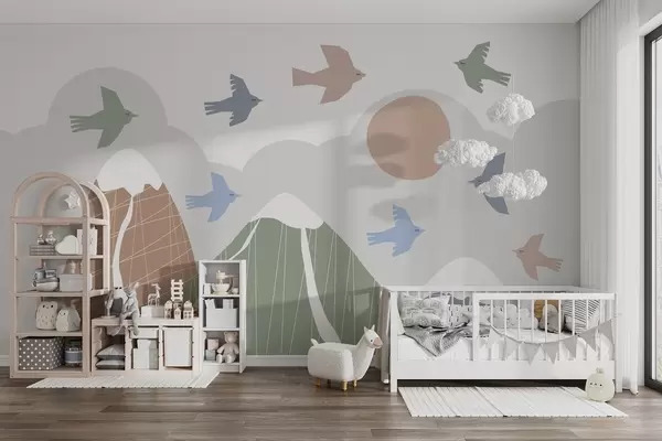 Carta da parati Montagne e uccelli scandinavi nr. w05166v1