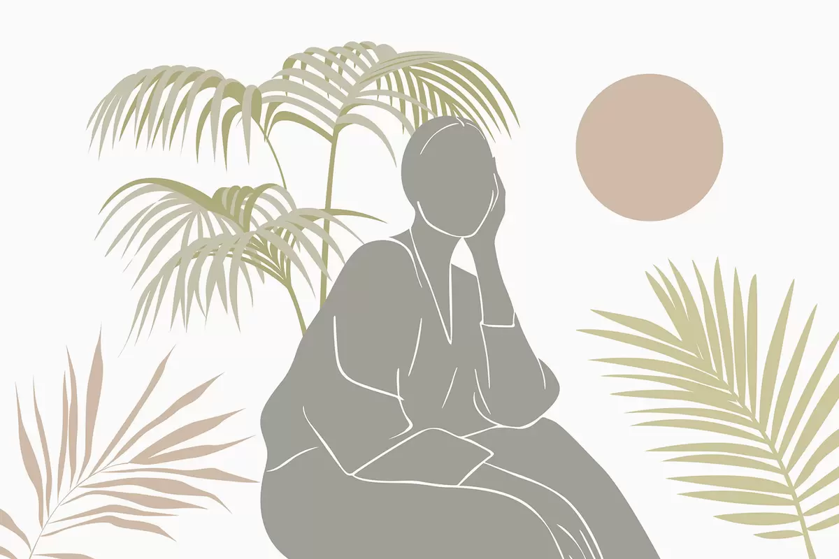 Carta da parati Sagoma di una donna e foglie di palma nr. w05190