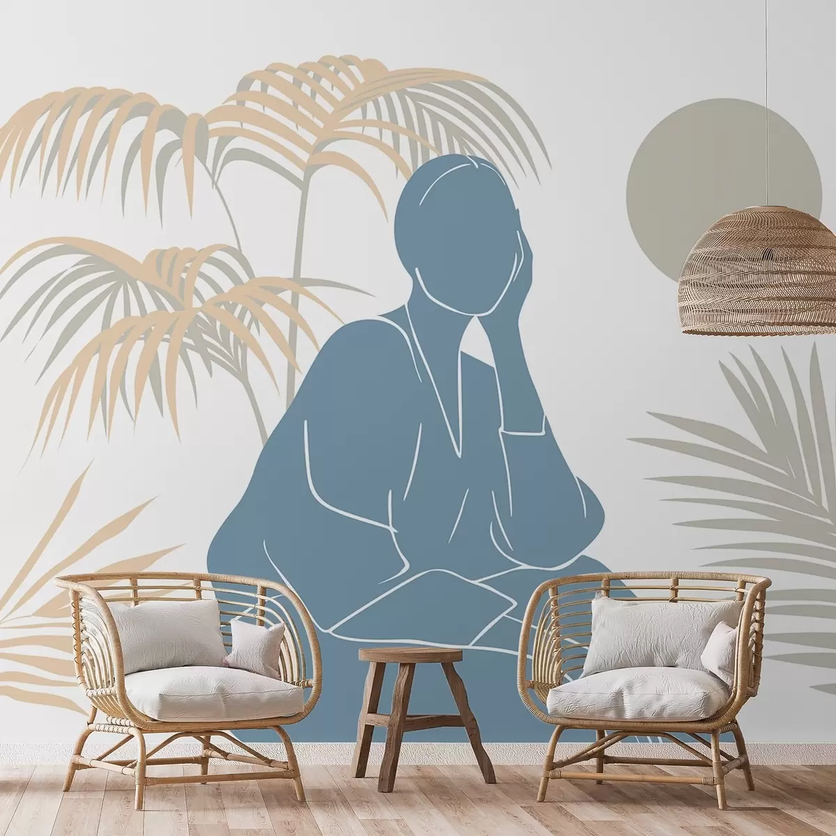 Carta da parati Sagoma di una donna e foglie di palma nr. w05190v1