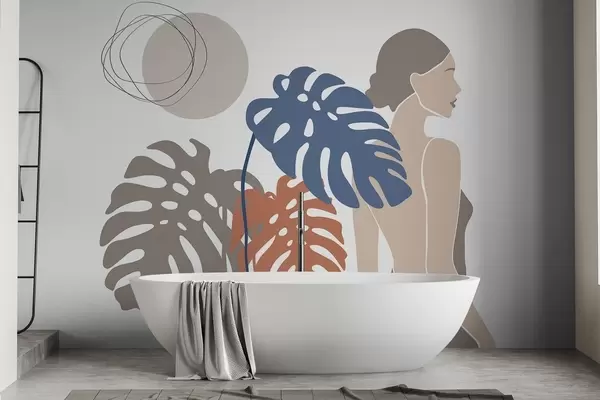 Carta da parati Sagoma di una donna vicino a foglie tropicali nr. w05192