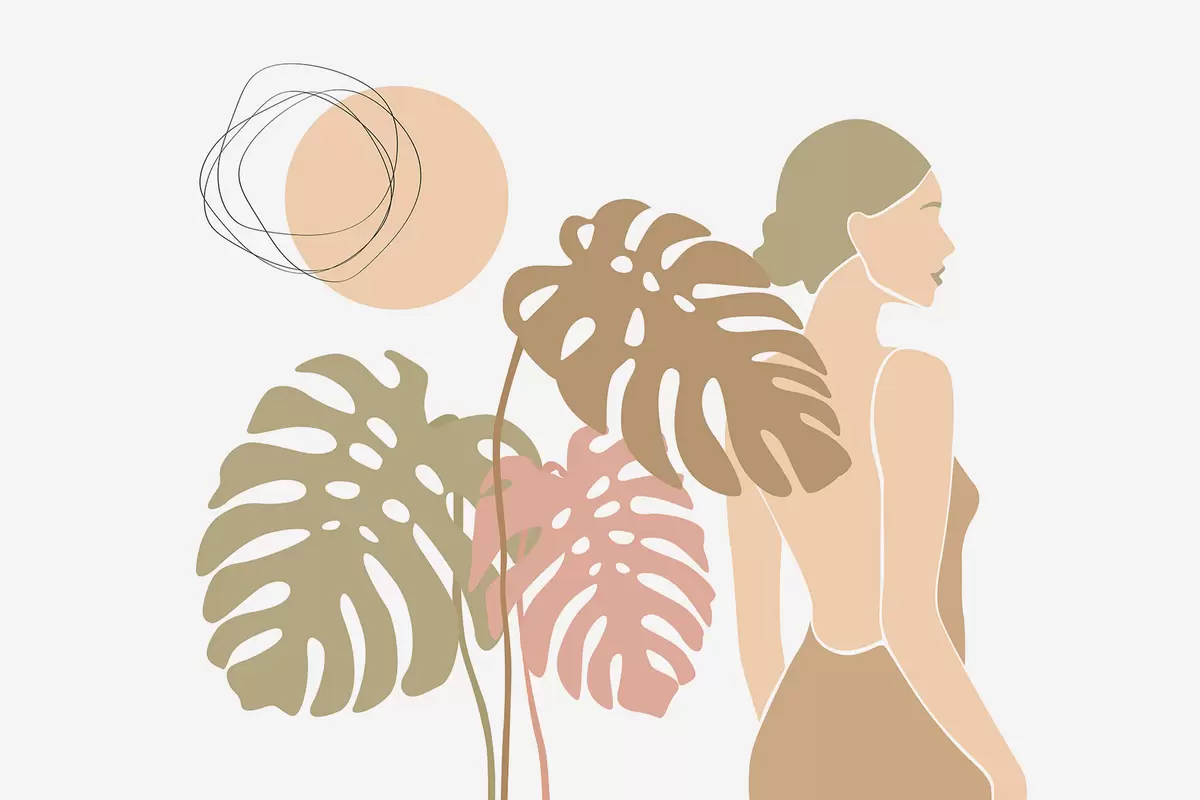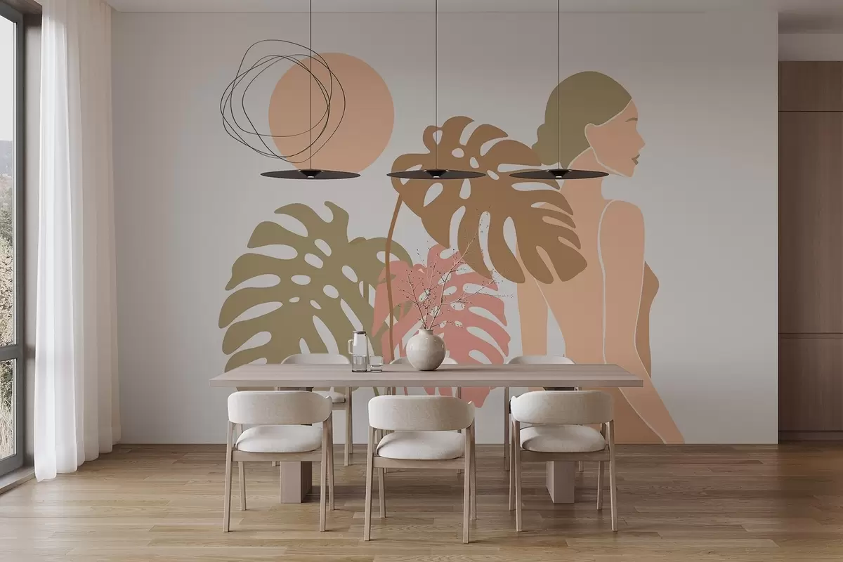 Carta da parati Sagoma di una donna vicino a foglie tropicali nr. w05192v1