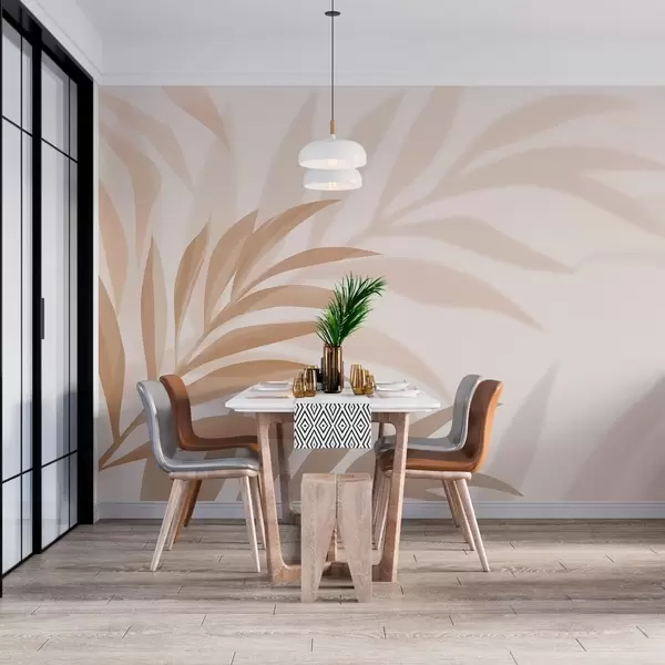 Carta da parati grandi foglie di palma ricurve nei toni del beige e del marrone nr. w05211