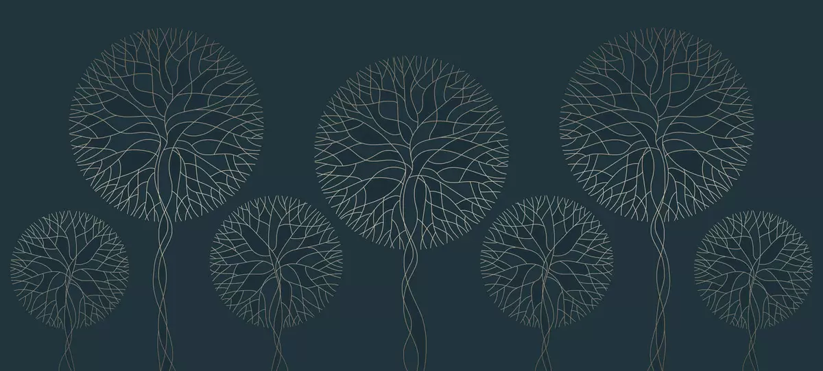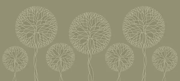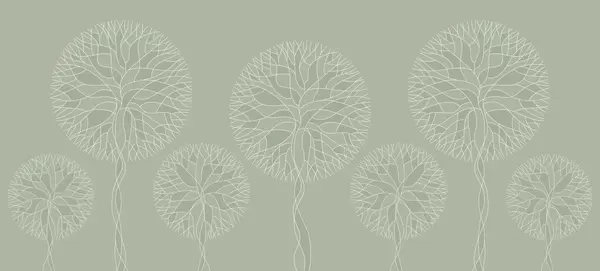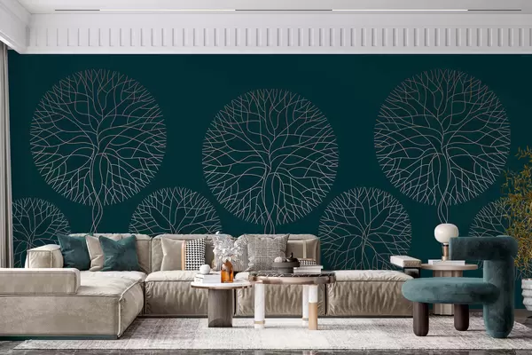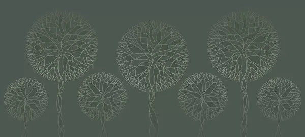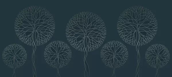 Carta da parati Alberi lineari fantastici con chiome rigogliose in eleganti tonalità smeraldo scuro nr. w05213